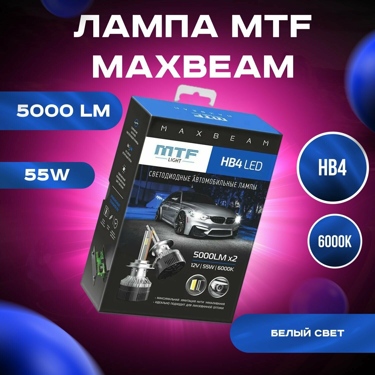 Автомобильные светодиодные лампы HB4 MTF MaxBeam 6000К 12V к-кт 2шт. MBB4K6 интересное: