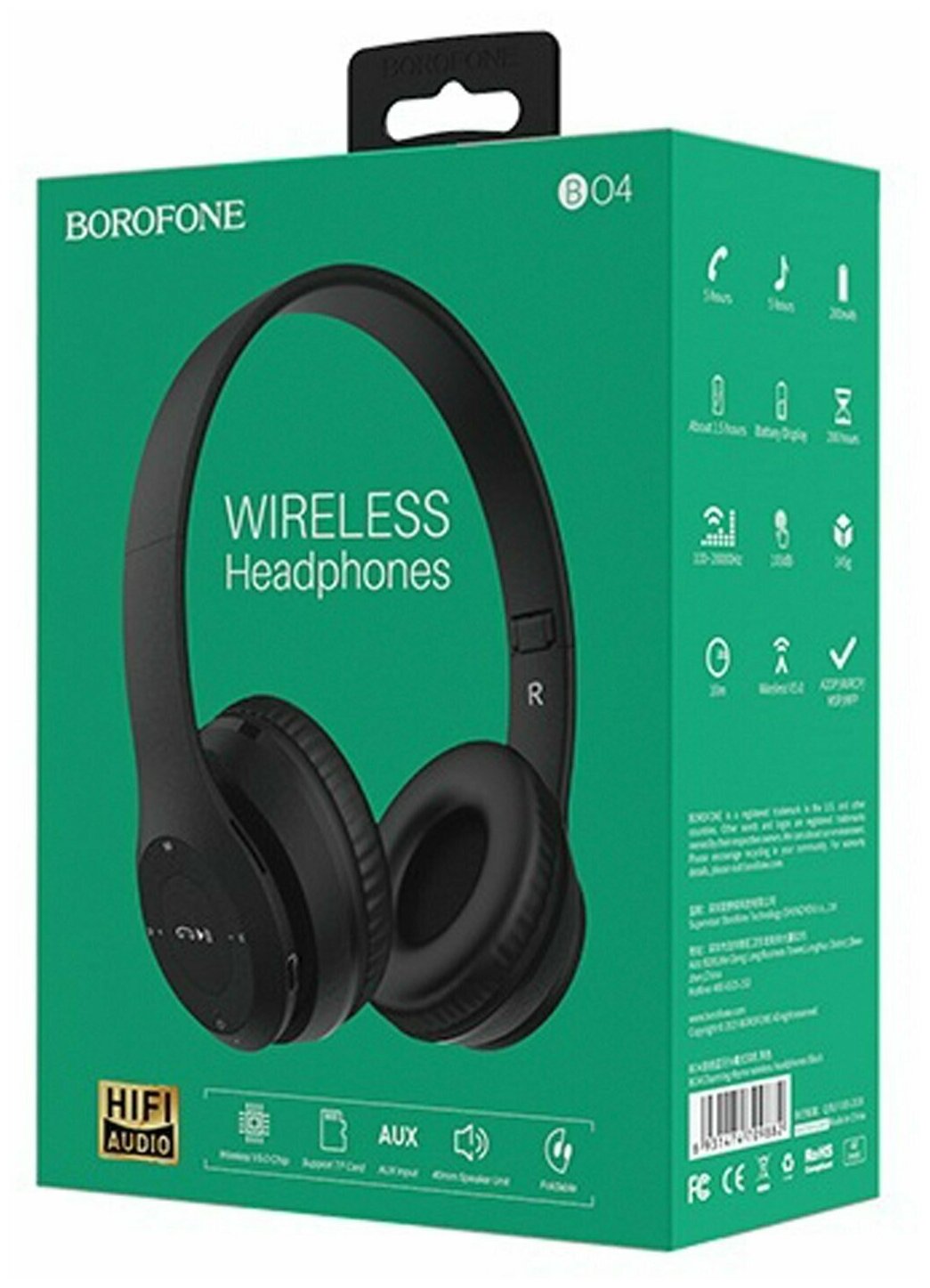 Купить Беспроводные наушники накладные BOROFONE BO4 Charming, Bluetooth + AUX, черный