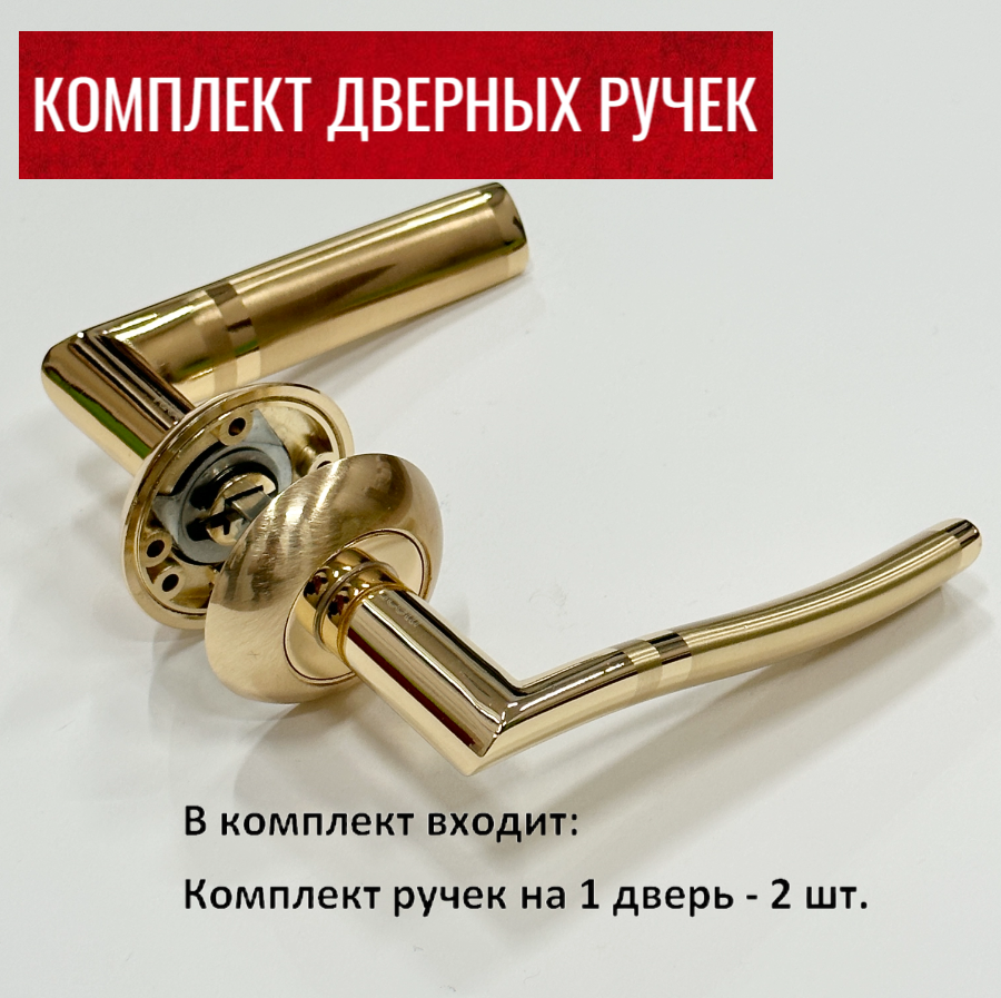 Дверная ручка Rucetti (Ручетти) RAP 3 SG/GP + Межкомнатный замок Morelli (Морелли) 1895P PG + Сантехническая завертка RAP WC SG/GP / Межкомнатные дверные ручки с замком и фиксатором