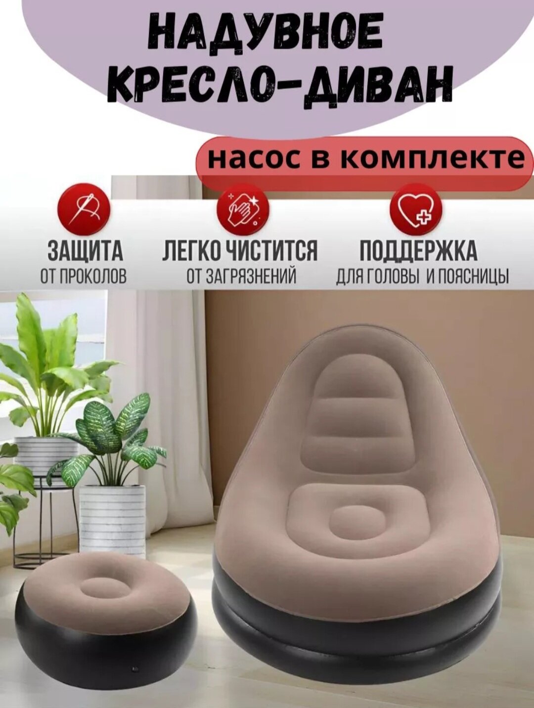 Кресло надувное с пуфиком, флок, 102 х 137 х 79 см / 64 х 28 см, от 6 лет, 68564NP