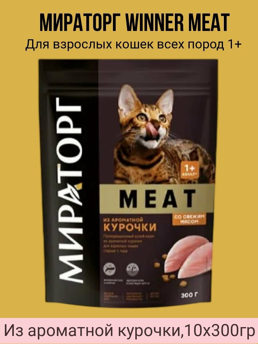 Купить Сухой полнорационный корм Мираторг WINNER MEAT 10х300гр для взрослых кошек старше 1 года всех пород из ароматной курочки