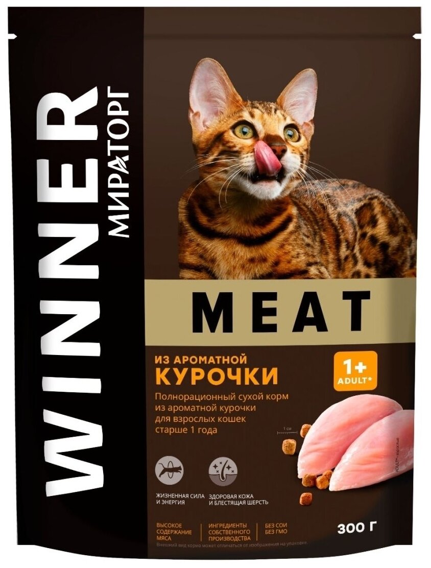 Сухой полнорационный корм Мираторг WINNER MEAT 10х300гр для взрослых кошек старше 1 года всех пород из ароматной курочки интересное: