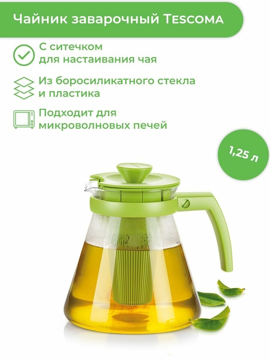 Чайник Tescoma Teo 1.25л, с ситечками для заваривания, зелёный 646623.25