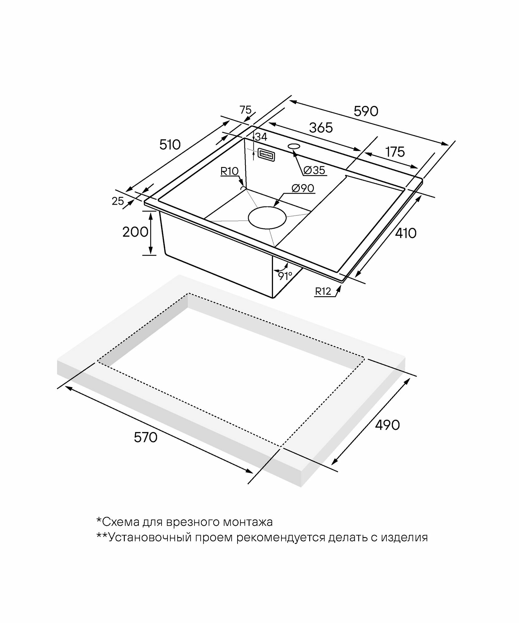| Установка | врезная / интегрированная |