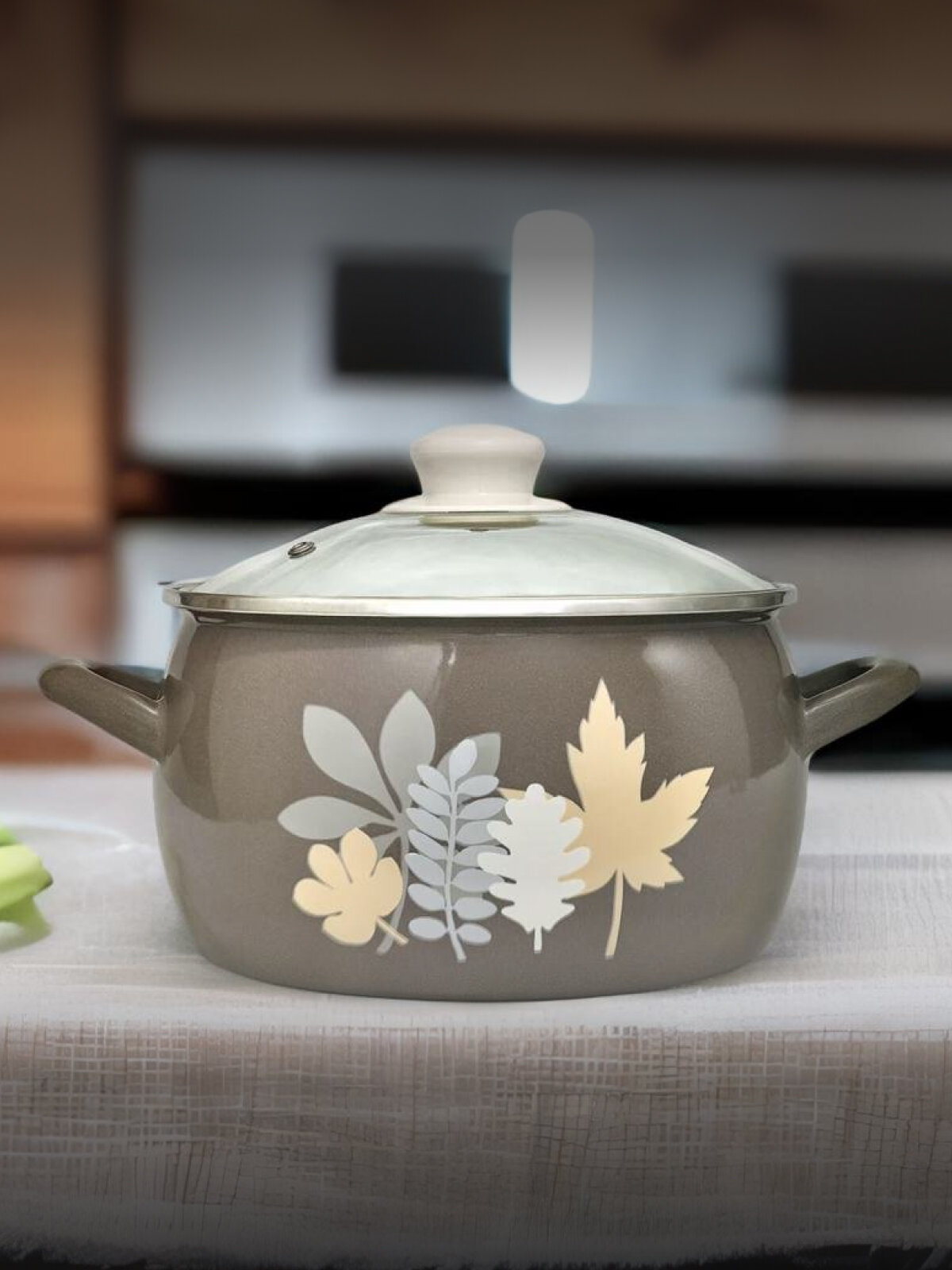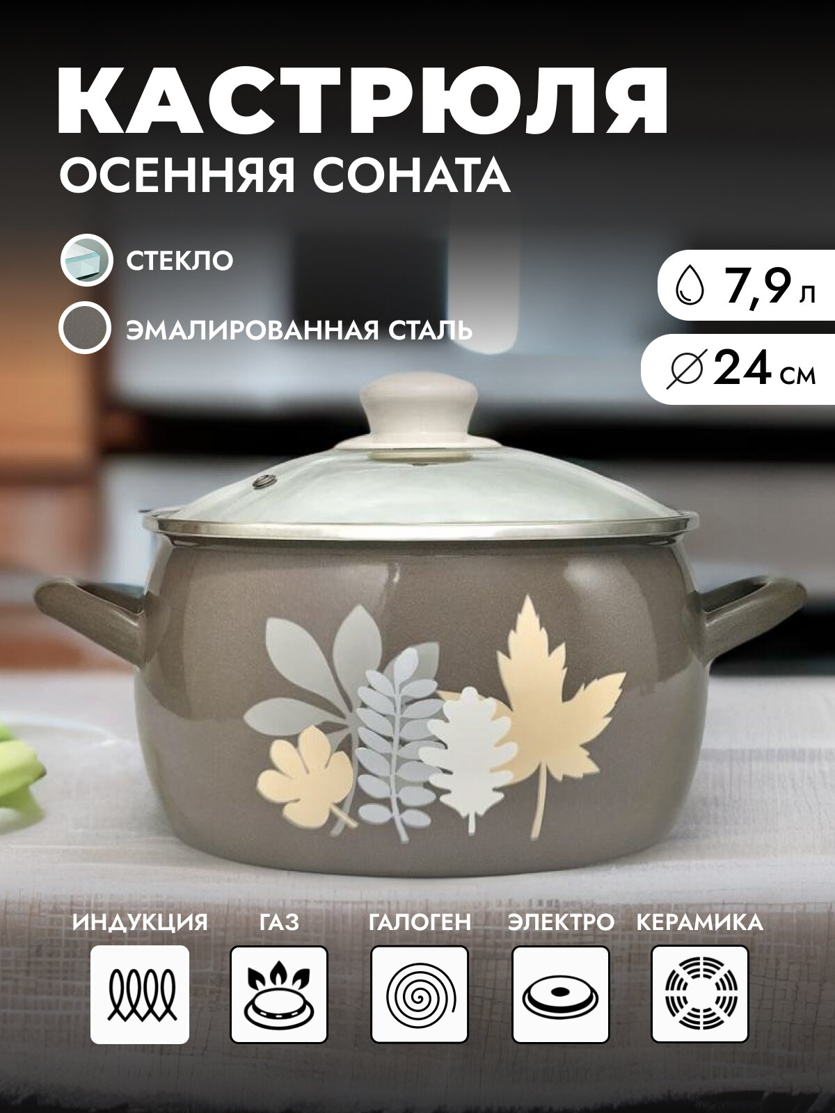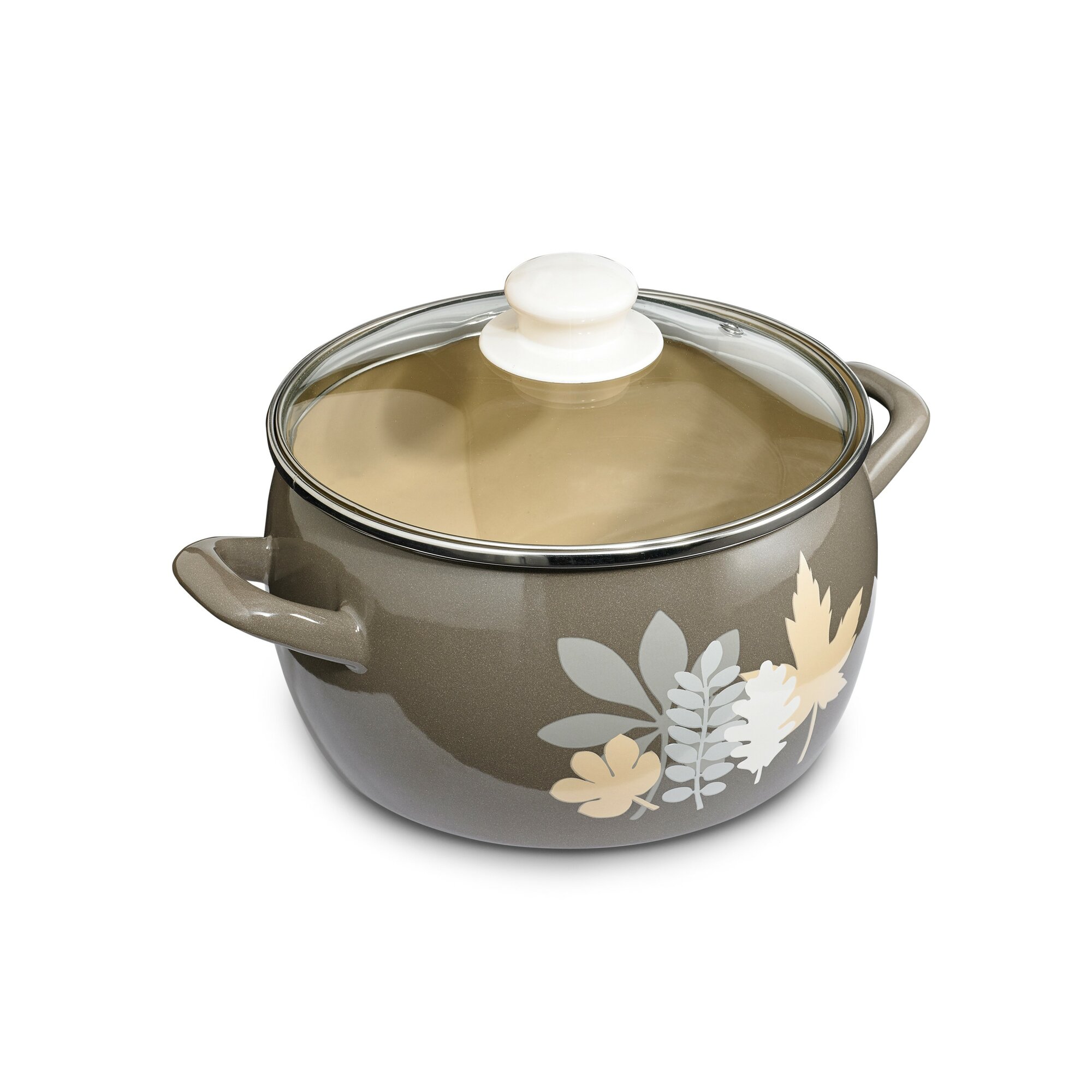 Кастрюля глубокая эмалированная со стеклянной крышкой, 5,7 л, Осенняя соната