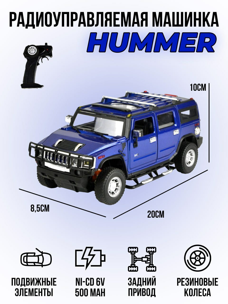 Радиоуправляемая машинка Hummer H2 (корпус металл, 1:24) 25020A-BLUE