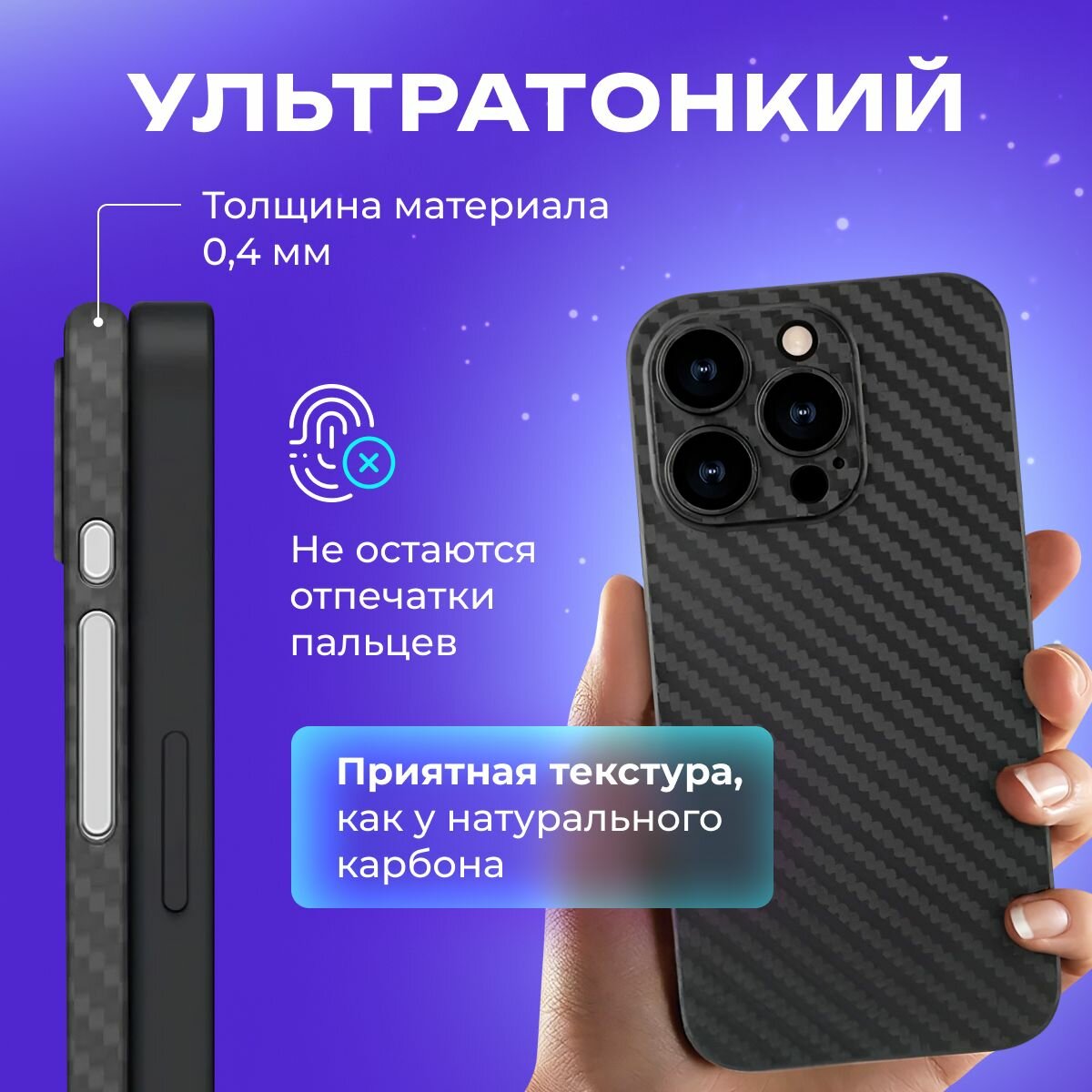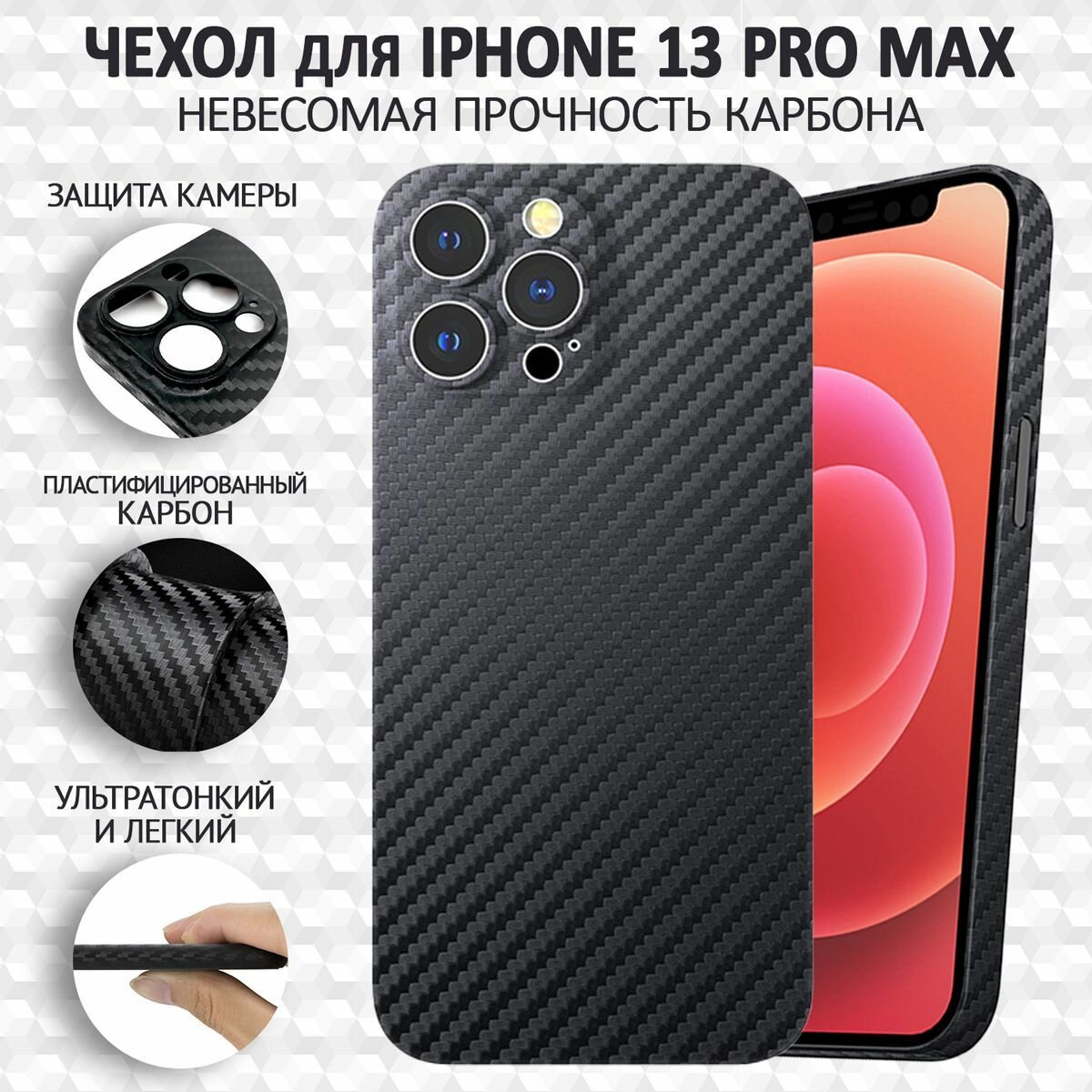 Чехол на айфон 13 про макс карбоновый, ультратонкий для Apple iPhone 13 Pro Max , карбон, с защитой камеры, черный