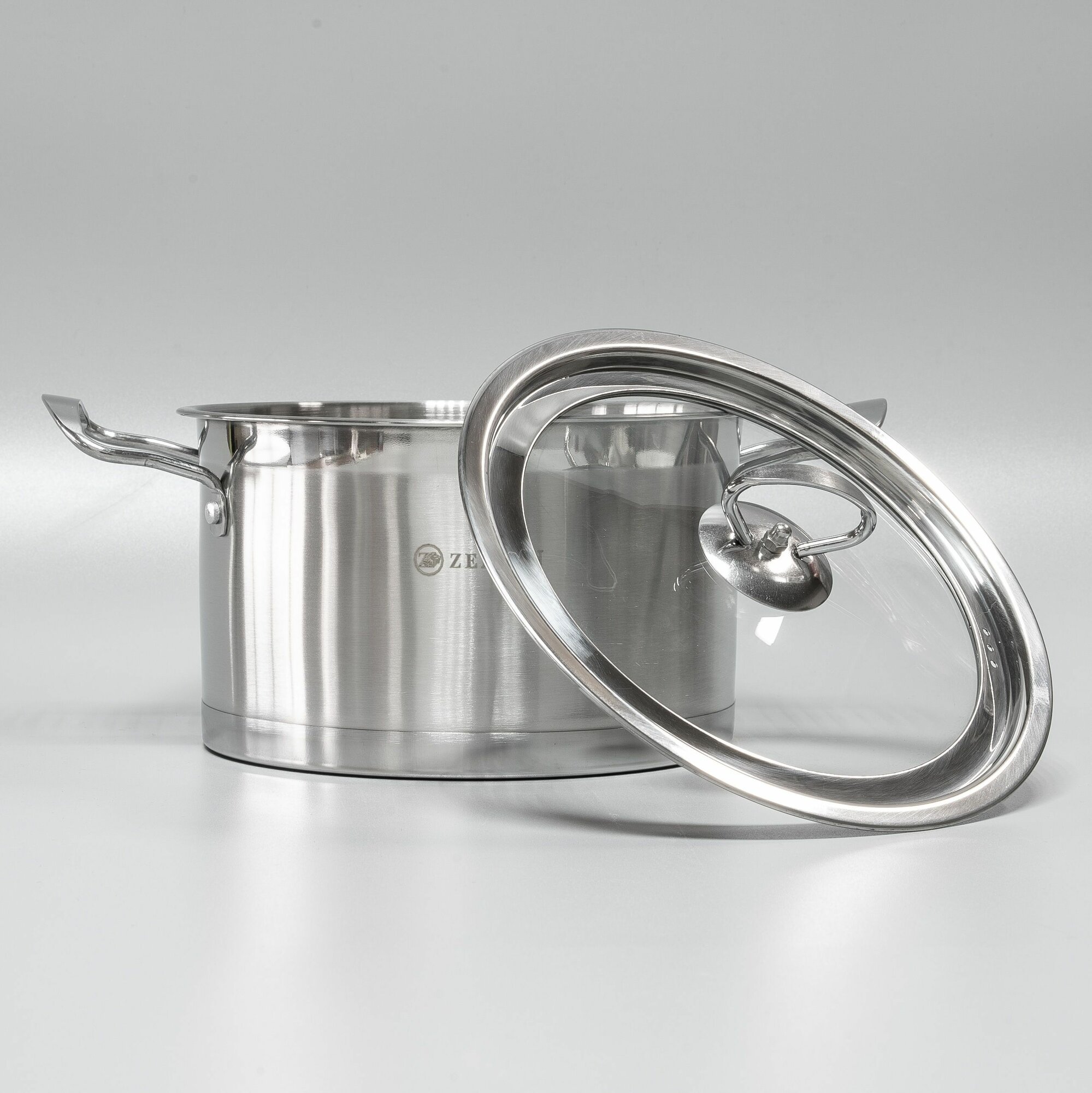 Кастрюля со стеклянной крышкой Zeidan Silver из нержавеющей стали для всех видов плит 3,2 л 20 см