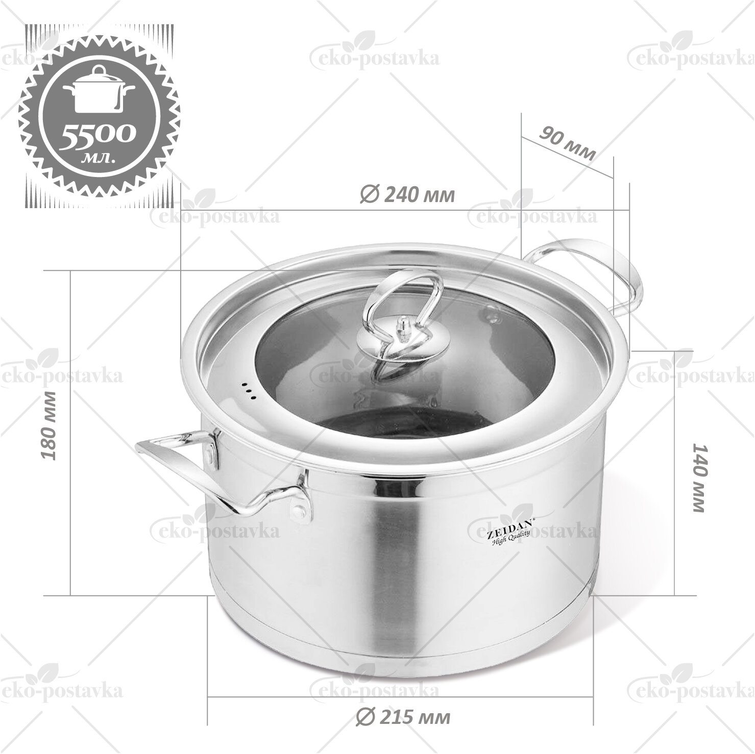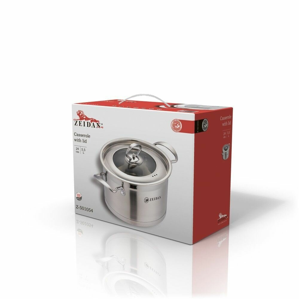 Купить Кастрюля из нержавеющей стали Zeidan с крышкой 24 см для газовых электрических и индукционных плит 5,5 л