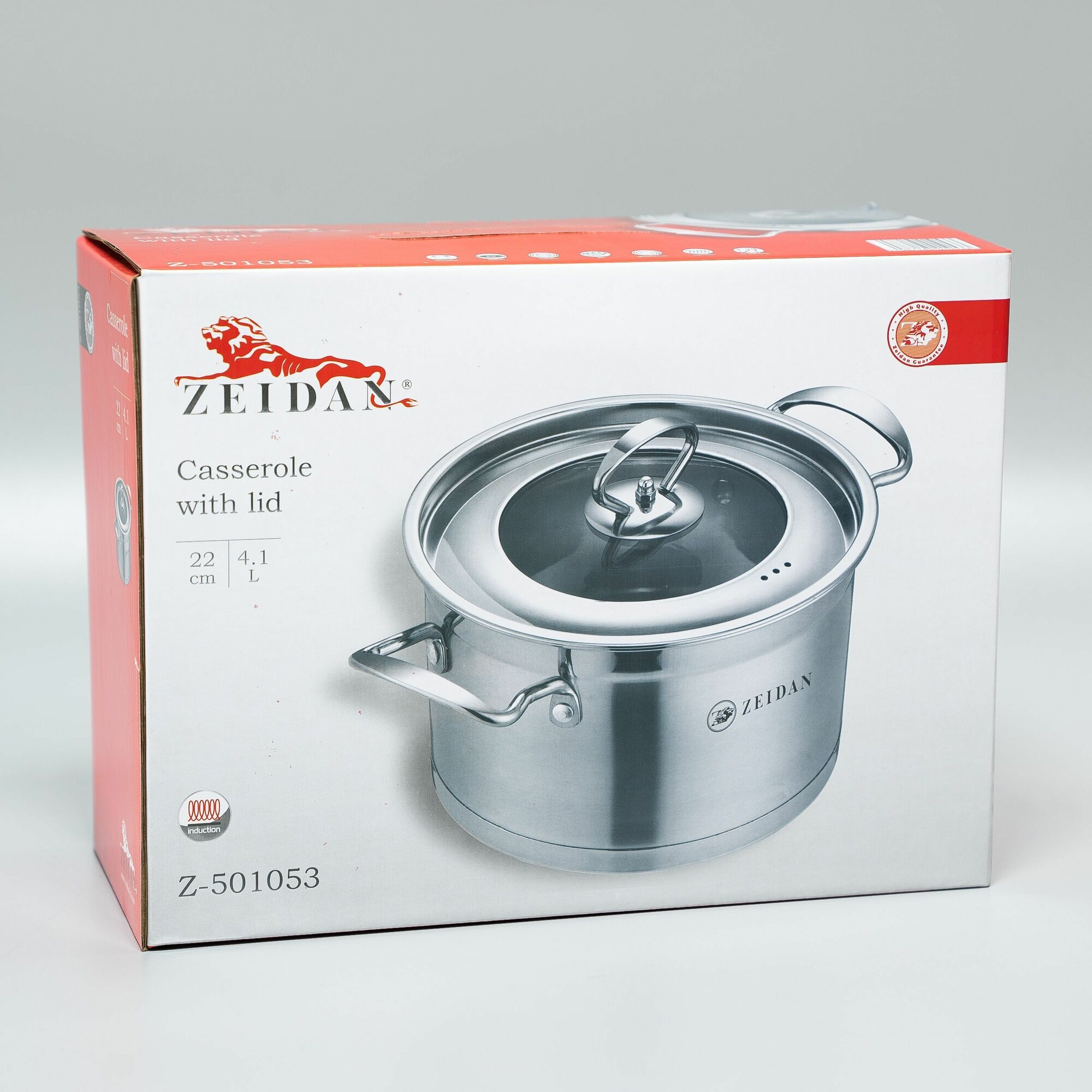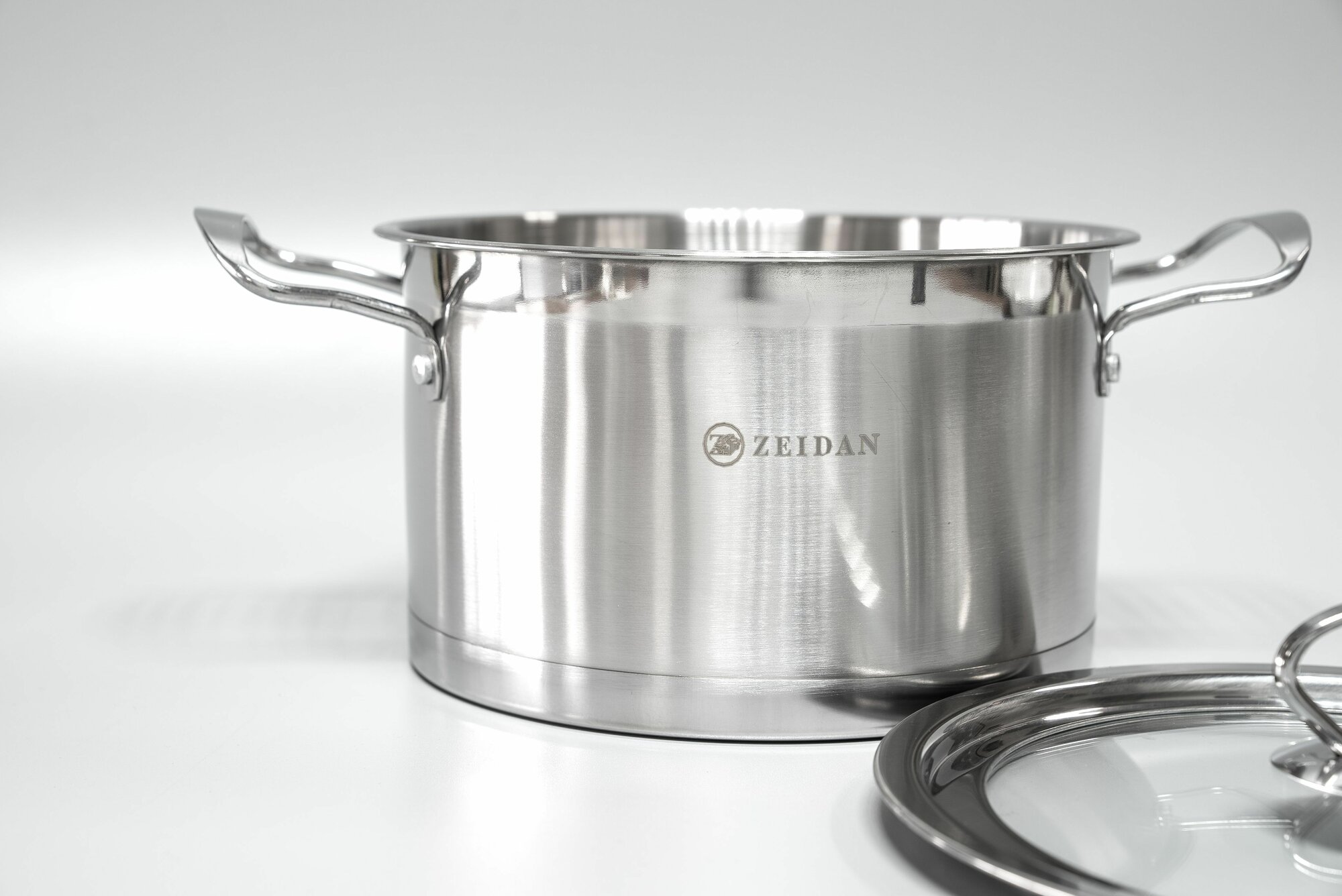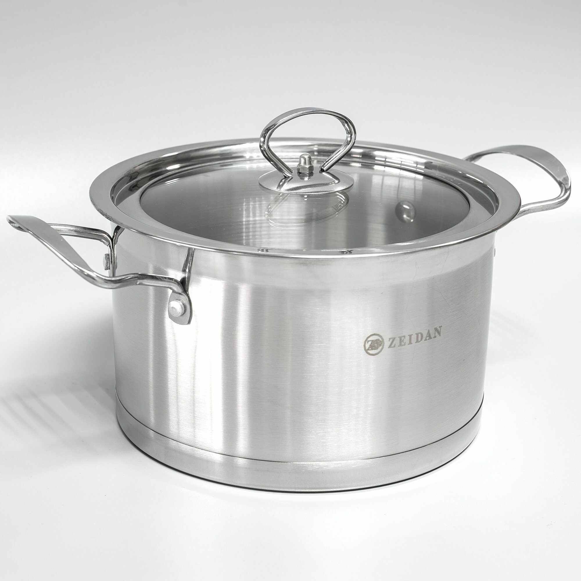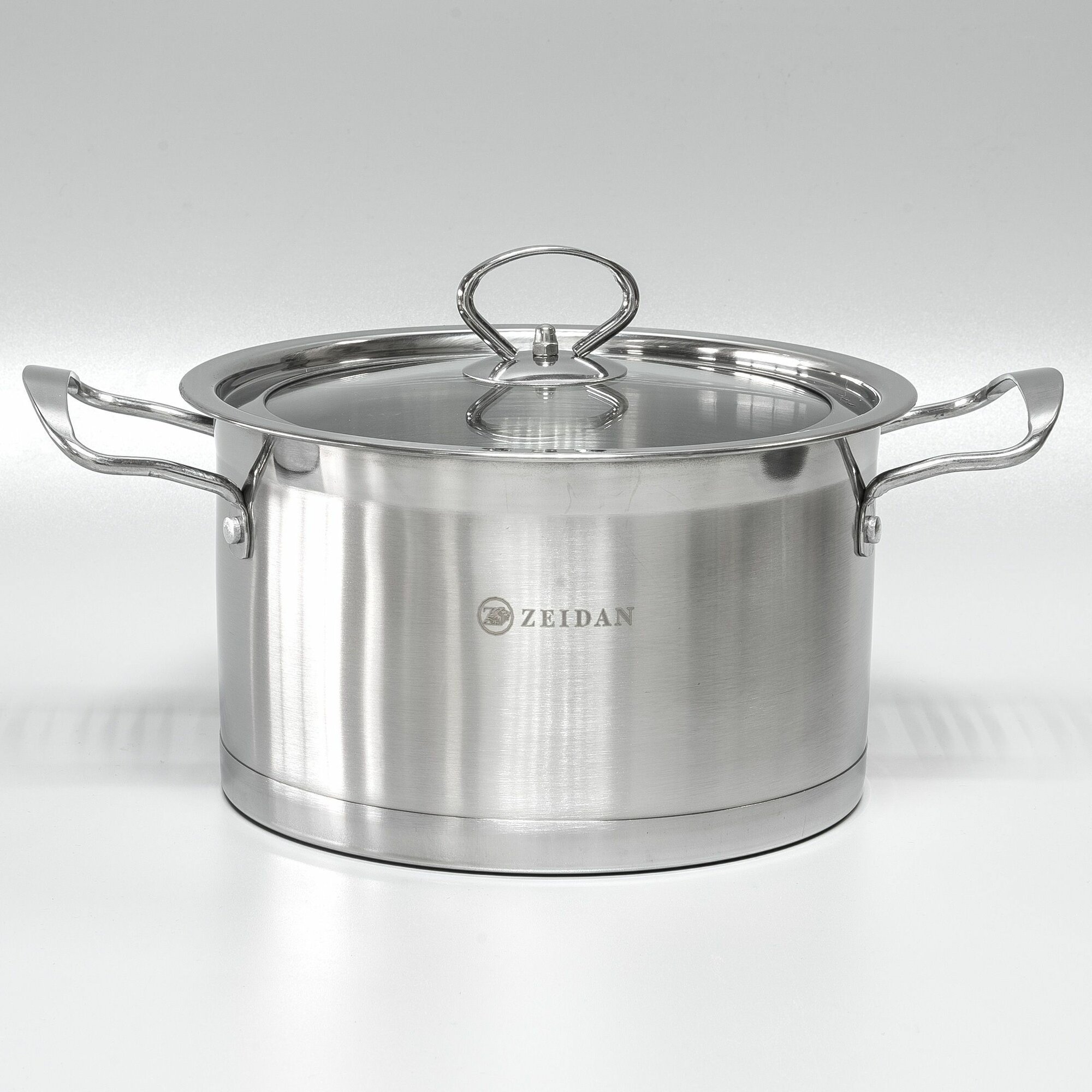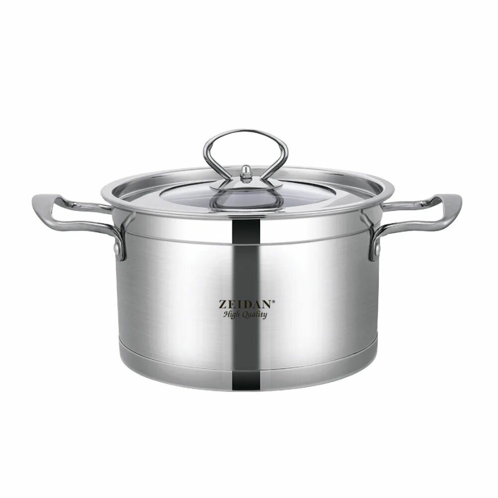 Кастрюля 4,1 литра нержавеющая сталь Zeidan со стеклянной крышкой 22 см для всех видов плит, включая индукционную