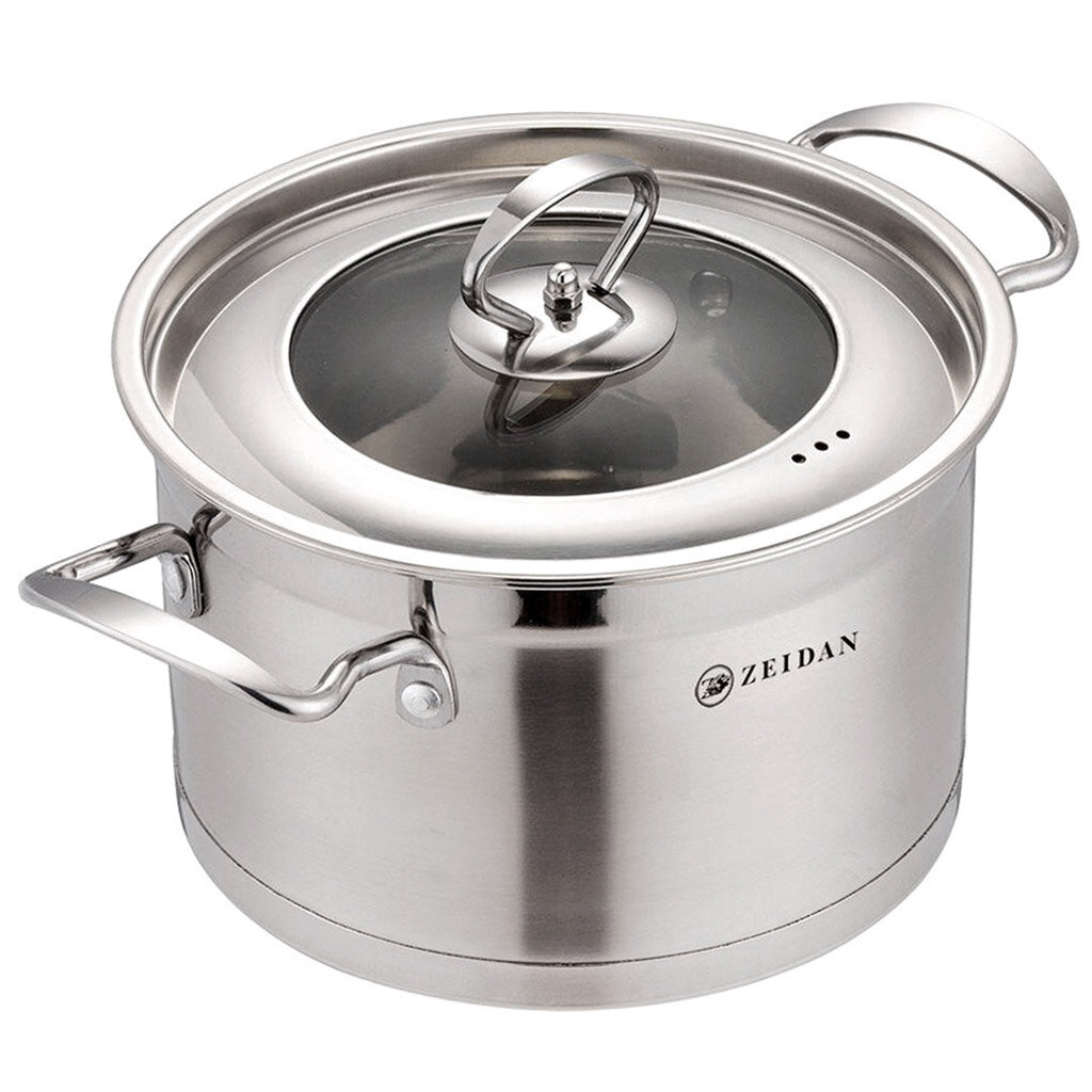 Кастрюля из нержавеющей стали Zeidan с крышкой для газовых электрических и индукционных плит 6,8 л