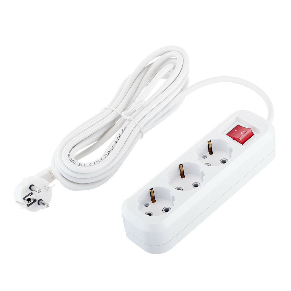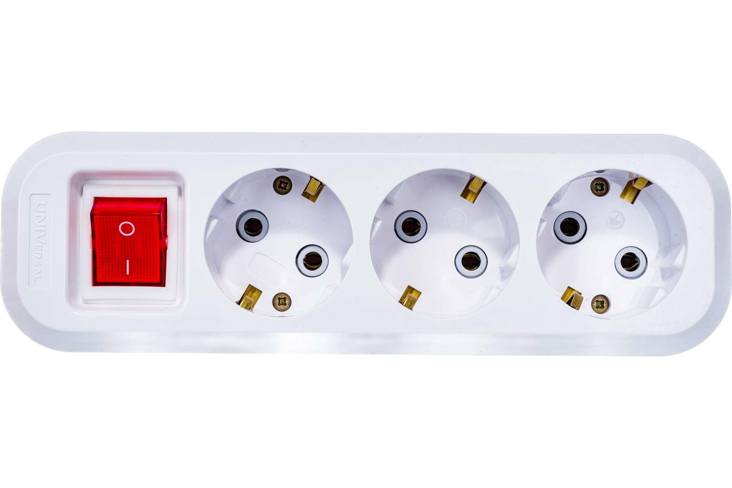 Удлинитель UNIVersal 3 розетки 5 м ПВС 3х1 мм2 13 А 2,9 кВт с кнопкой белый (9631987)