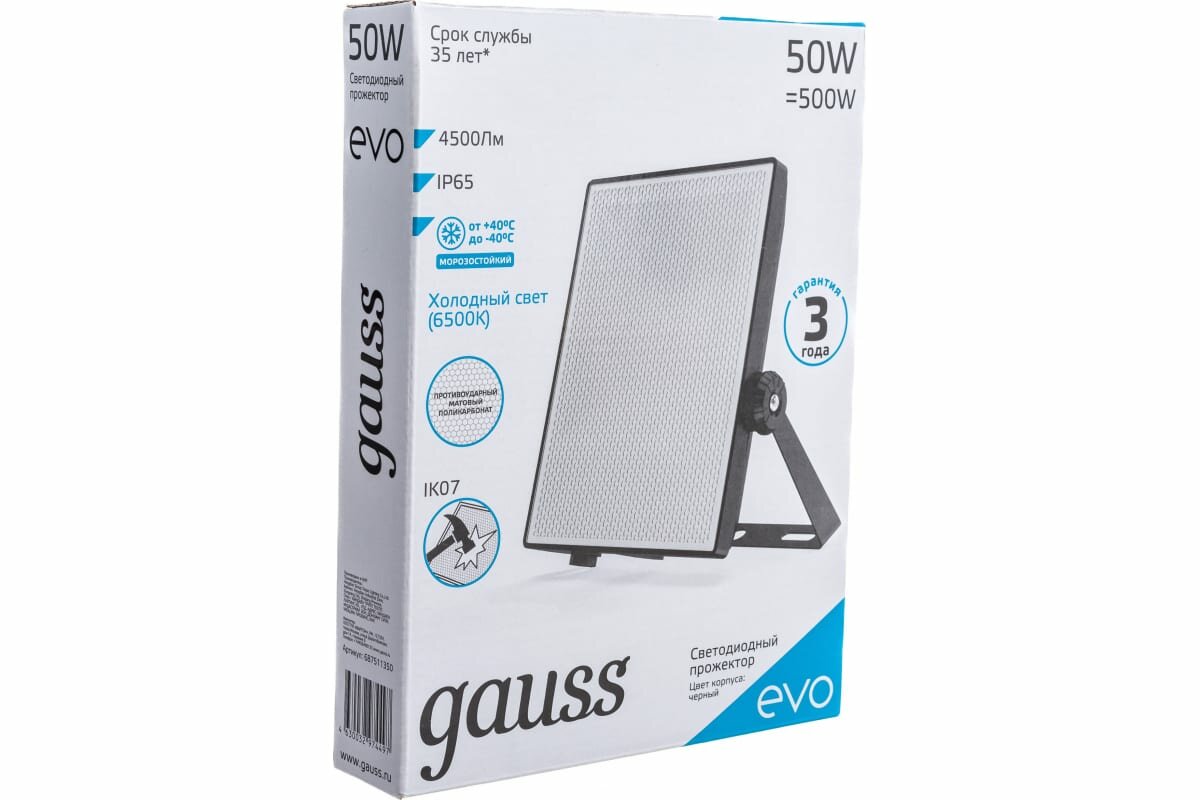 Прожектор Gauss EVO 50W 4500 lm IP65 6500К, IK07, черный 1/20 интересное: