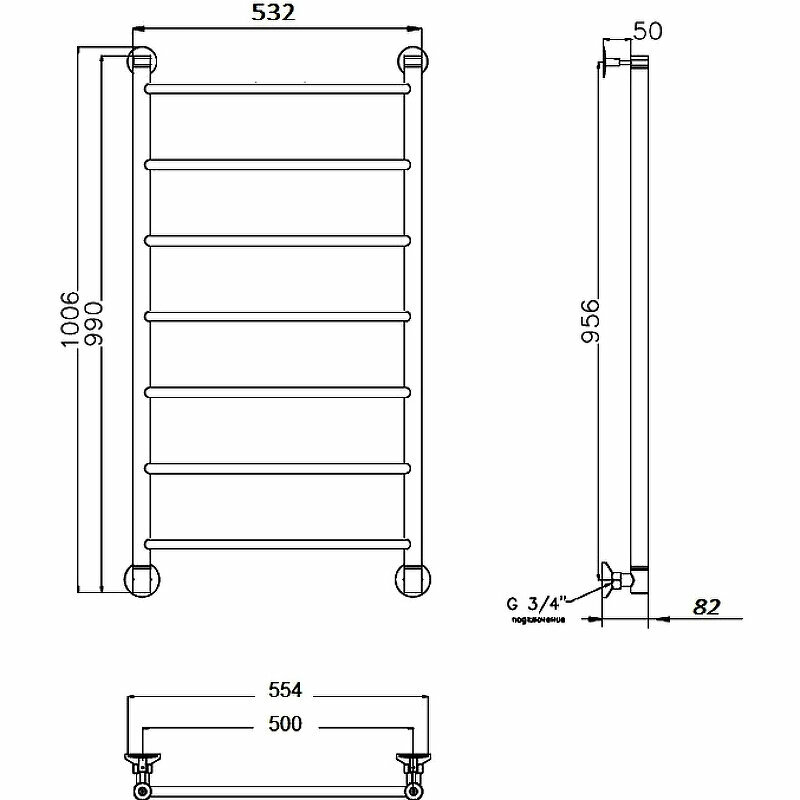 Полотенцесушитель водяной Тругор 554х1006мм форма лесенка 7 перекладин универсальное подключение