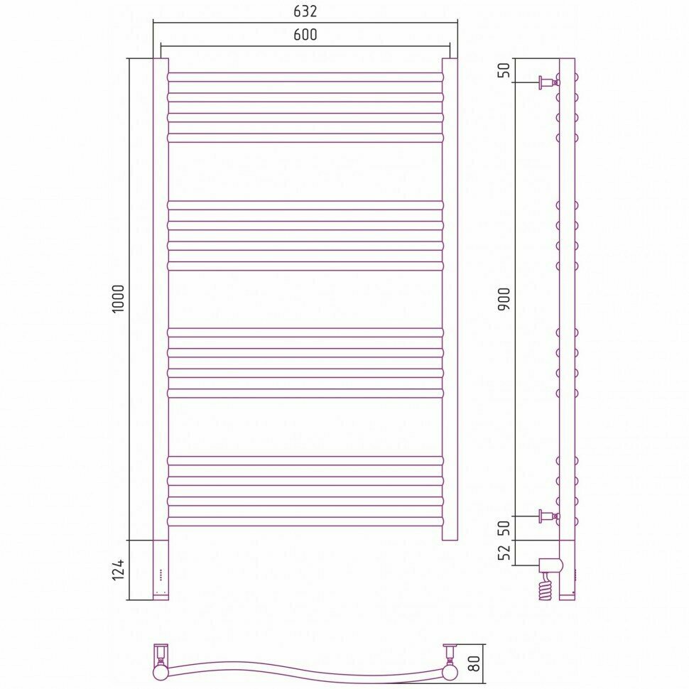 Полотенцесушитель электрический 1000x600 МЭМ левый Сунержа Флюид 3.0 00-5820-1060