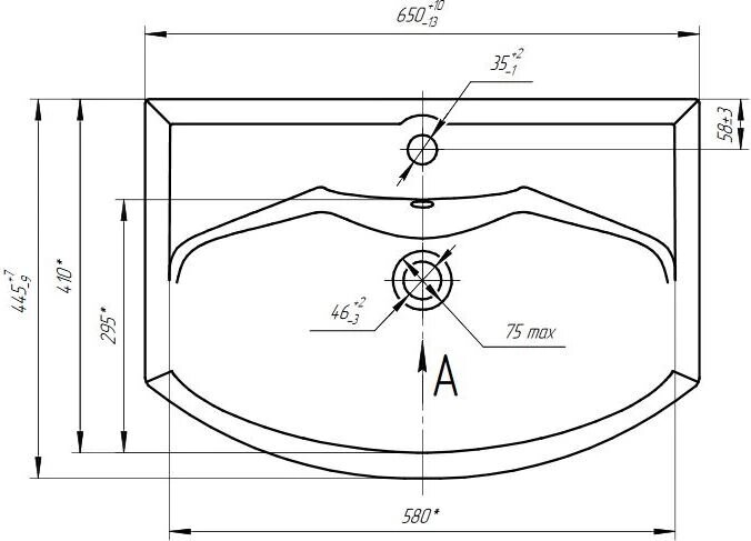 | Число размеченных отверстий под смеситель | отсутствуют |