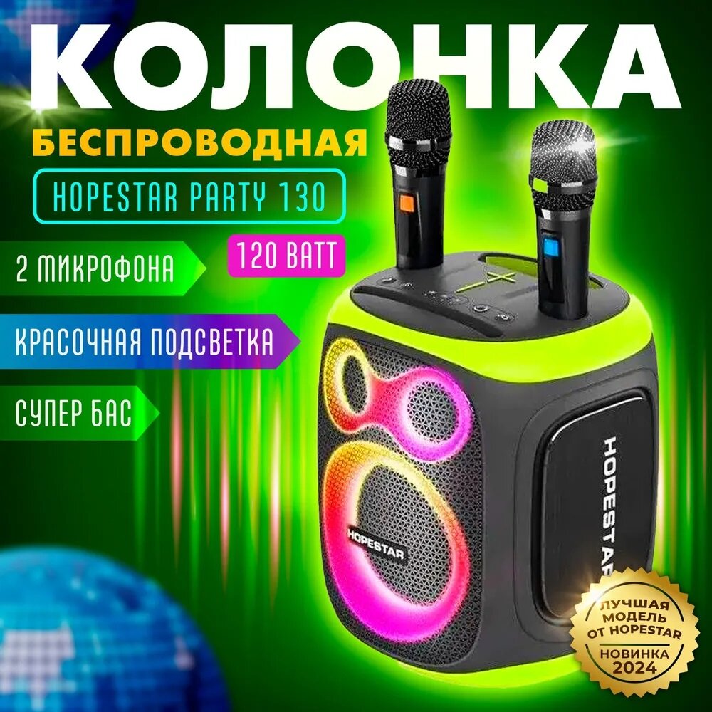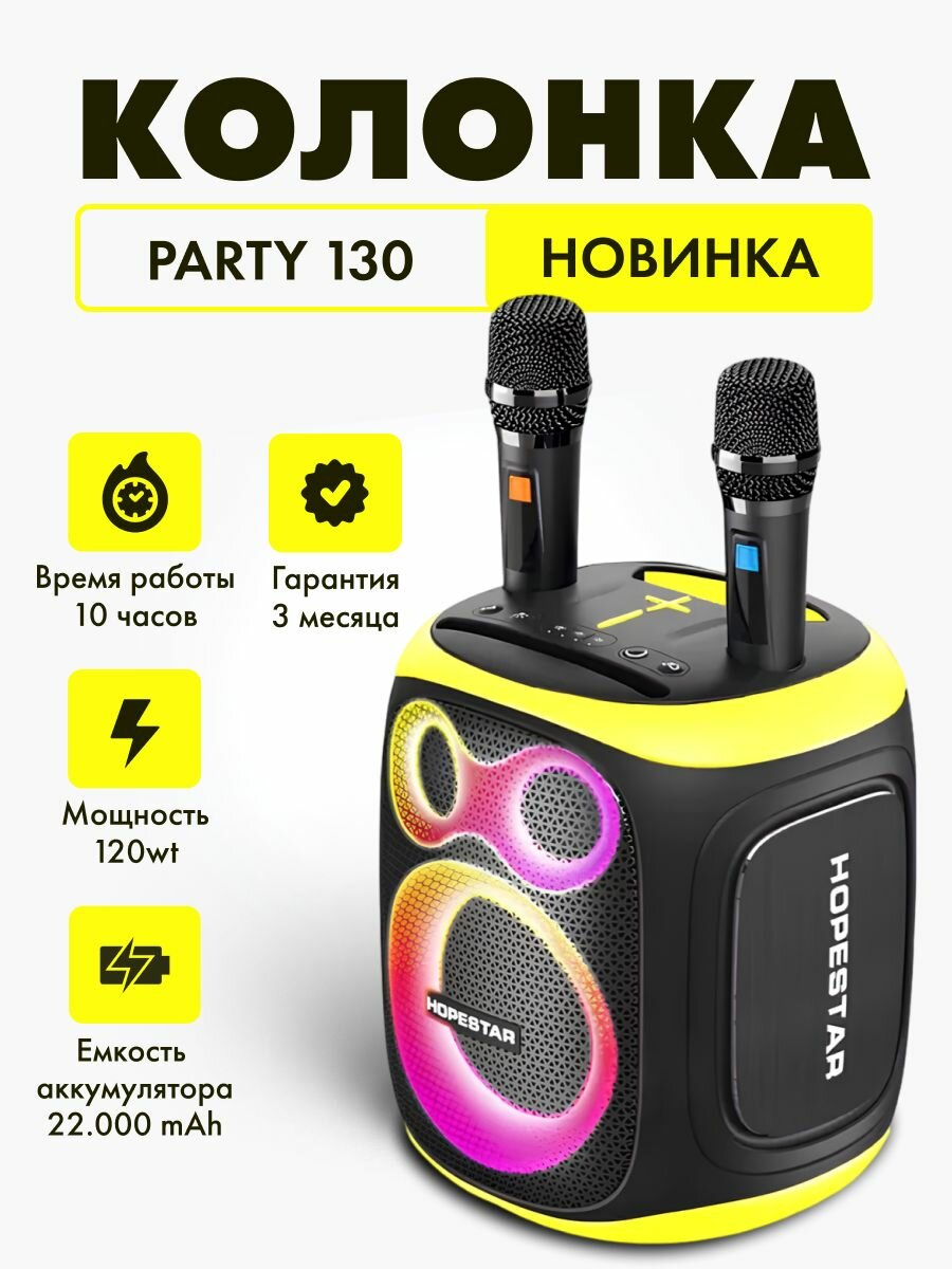 Портативная Bluetooth Колонка Hopestar Party 130 Черный (2 микрофона)