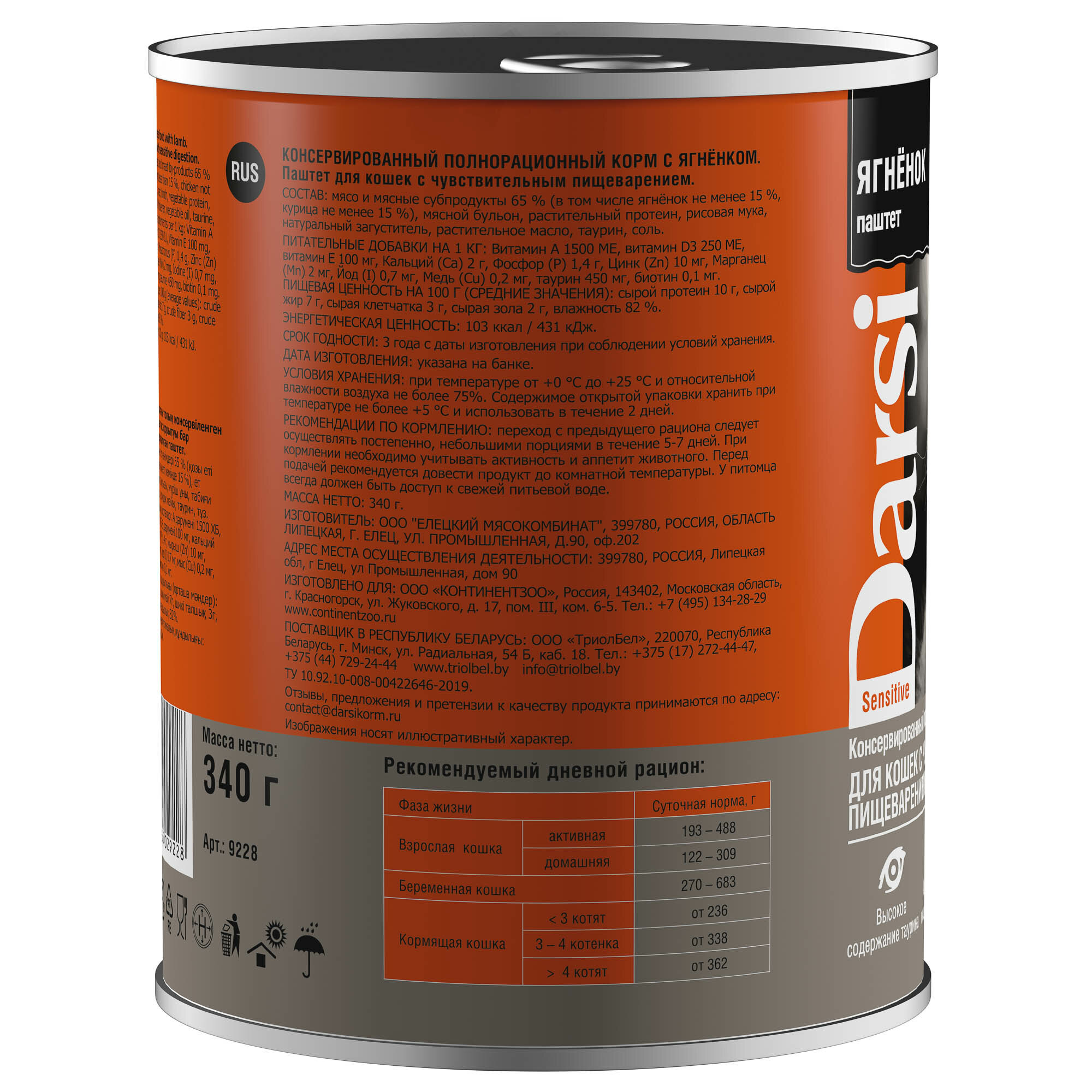 СохранитьКонсервированный полнорационный корм DARSI С ягнёнком. Паштет для кошек С чувствительным пищеварением, 340 Г интересное: