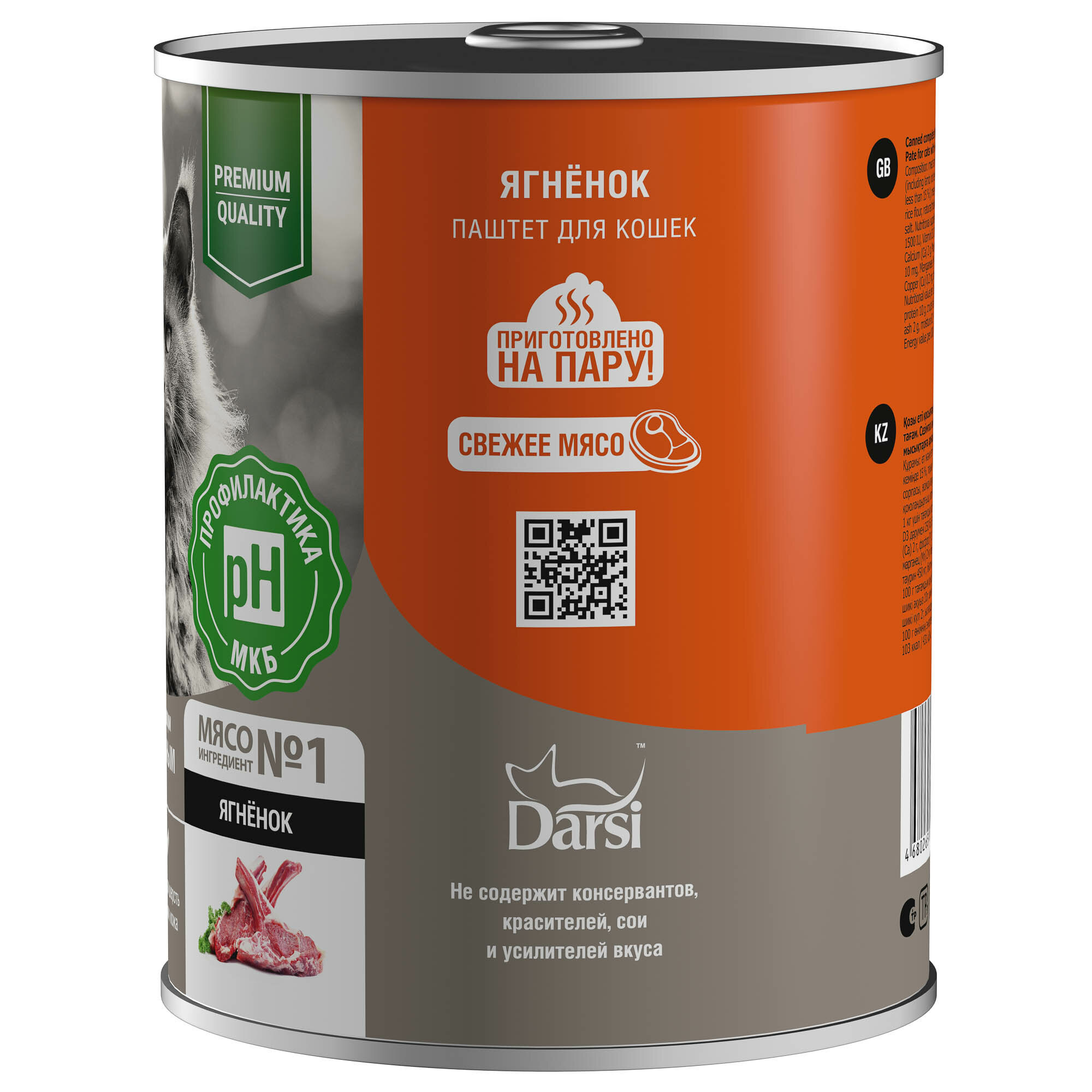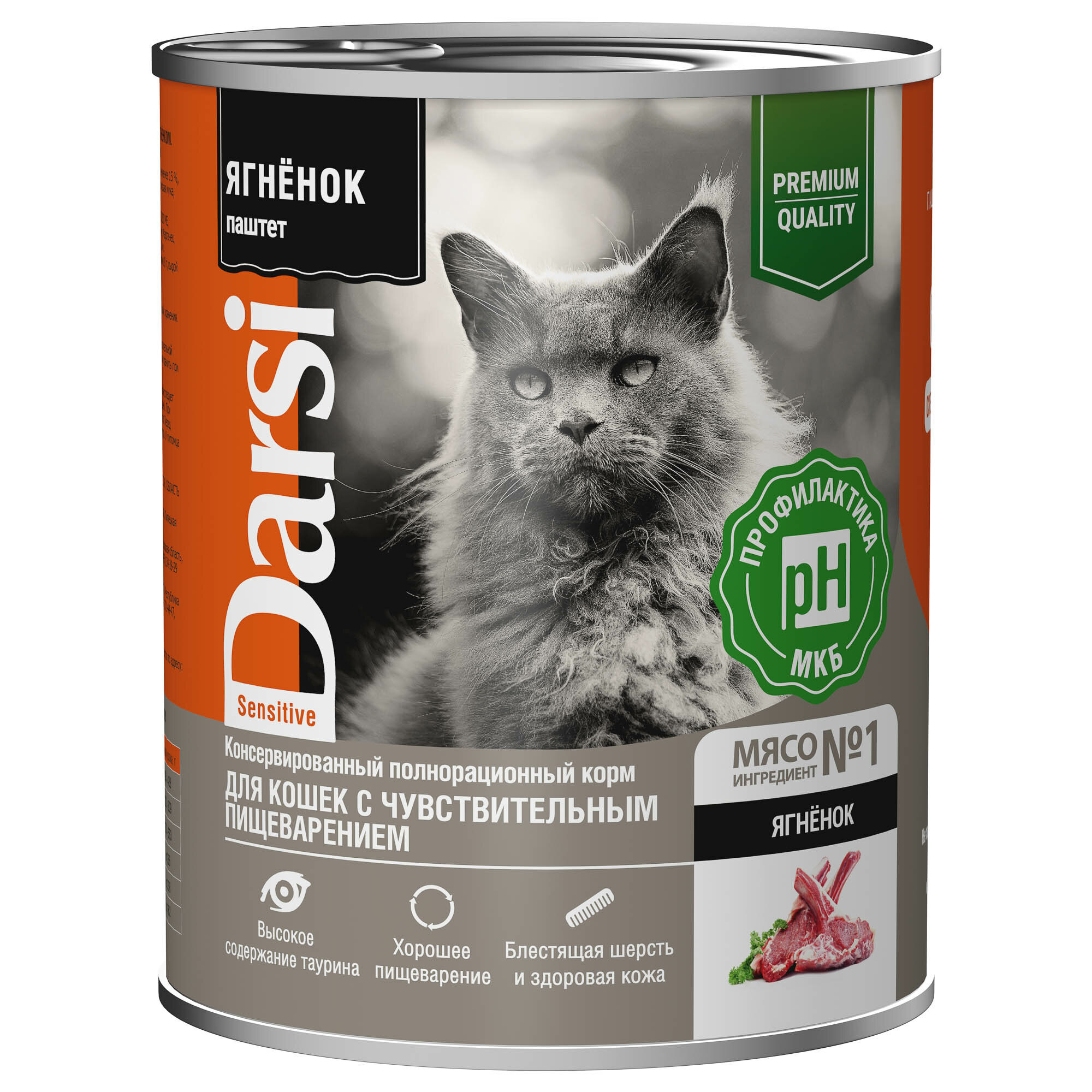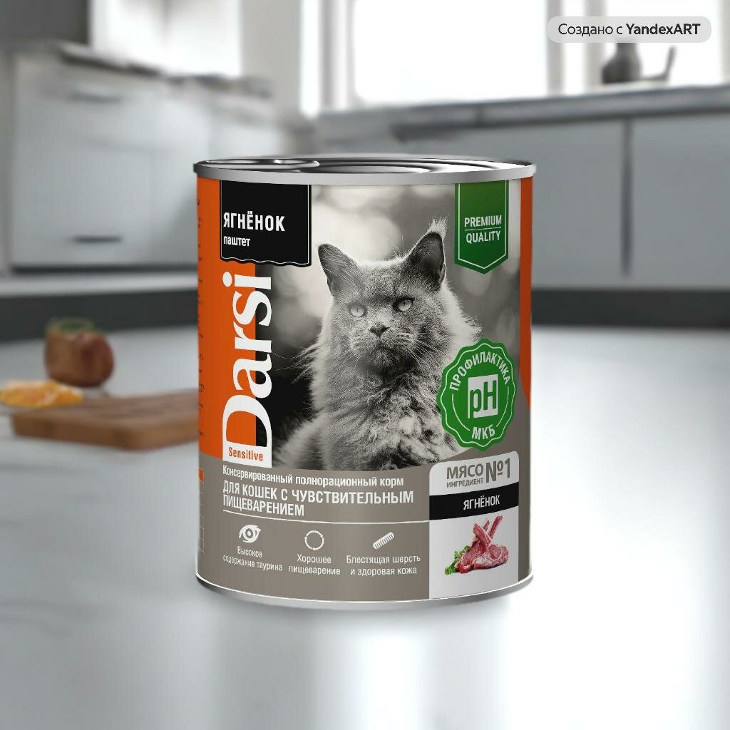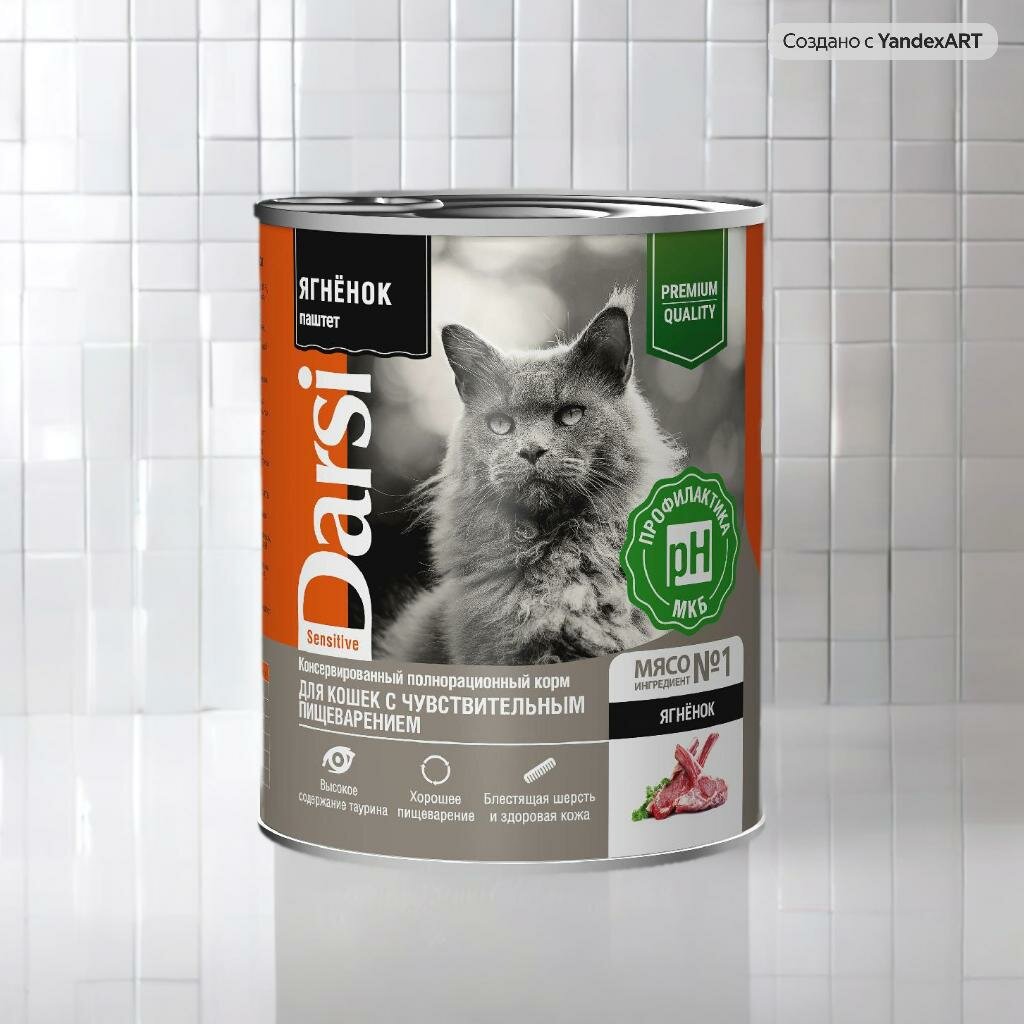 Купить Консервированный полнорационный корм DARSI С ягнёнком. Паштет для кошек С чувствительным пищеварением, 340 Г