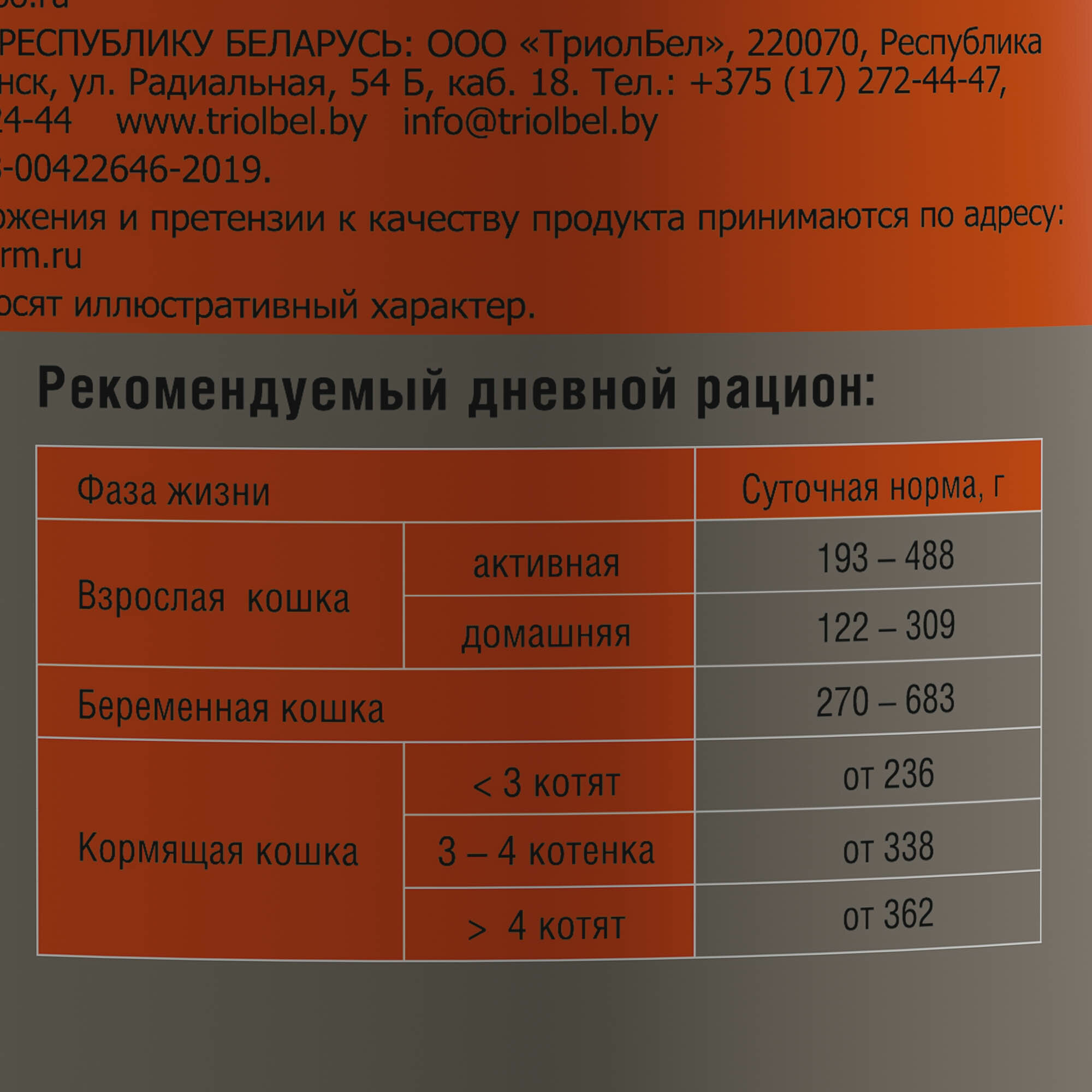 | Тип корма | влажный |