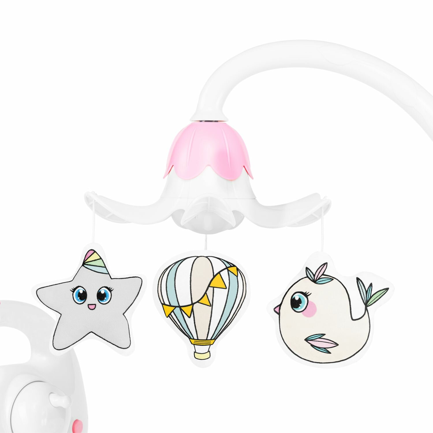 | Комплектация | автоматический мобиль с 3 игрушками, проектор излучает мягкий свет в 7 разных цветах; съемный подголовник; антимоскитная сетка |