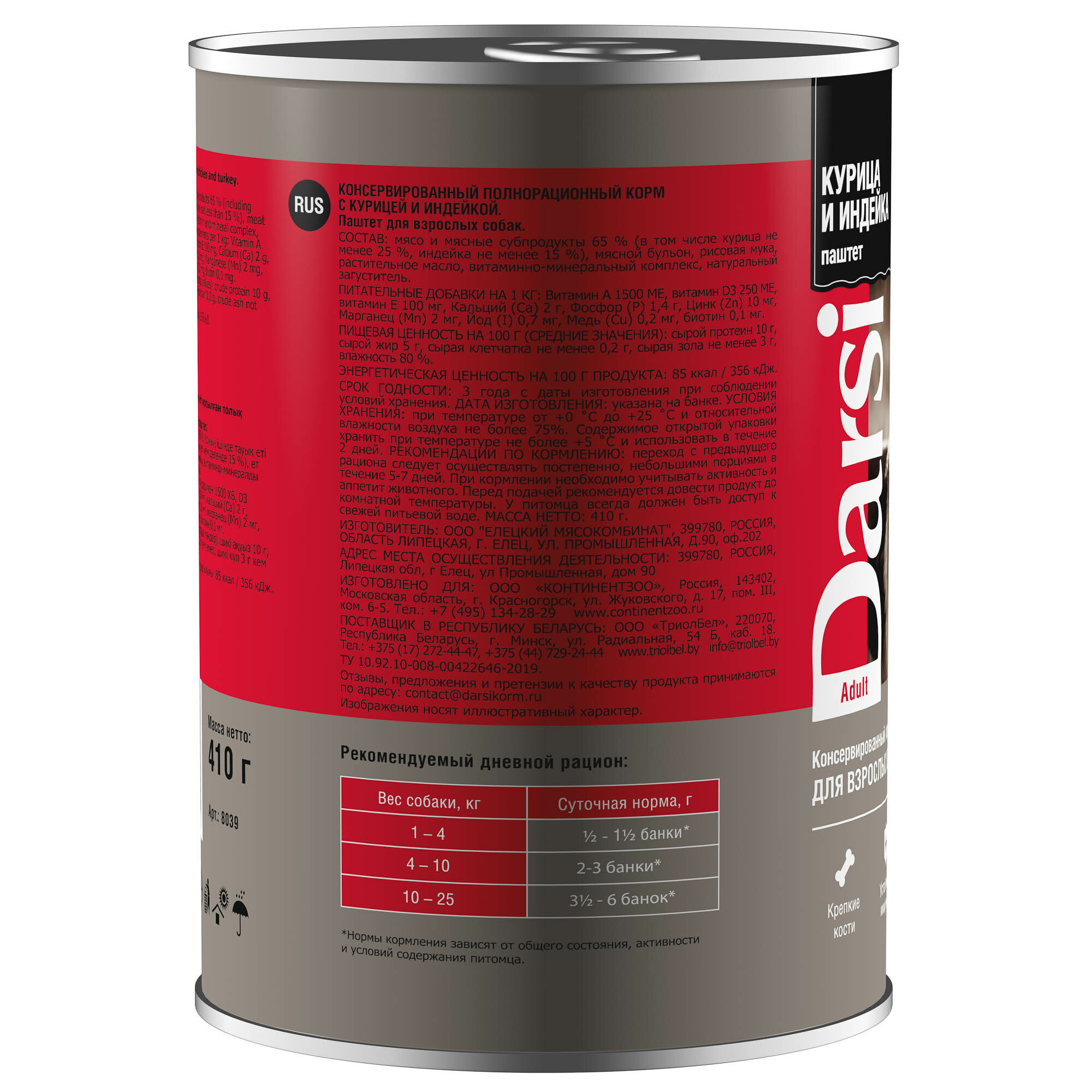 Консервы Darsi (паштет) для взрослых собак "Курица и Индейка", 410гр, 2шт
