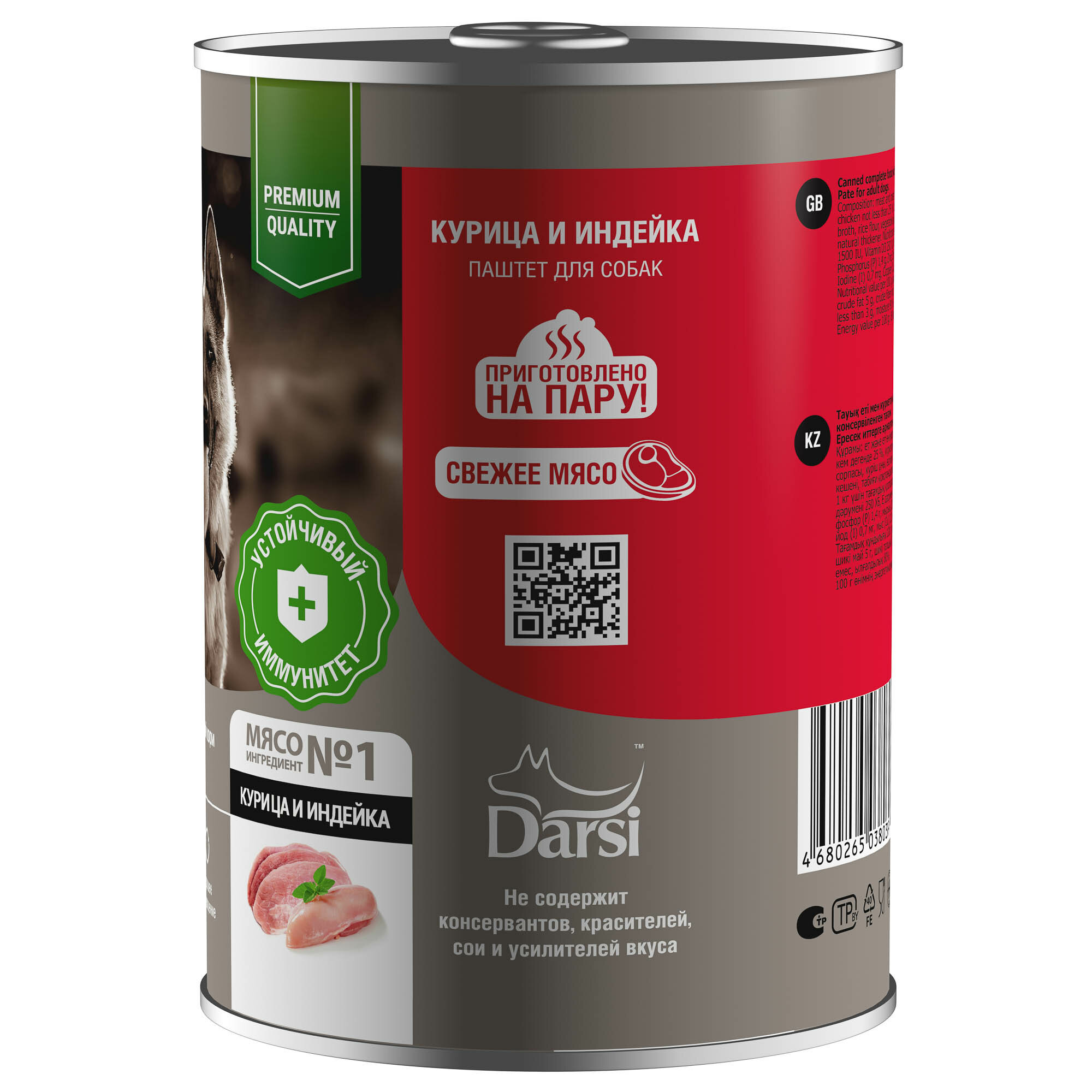 Корм Darsi (паштет) для взрослых собак "Курица и Индейка", 410г x 9 шт