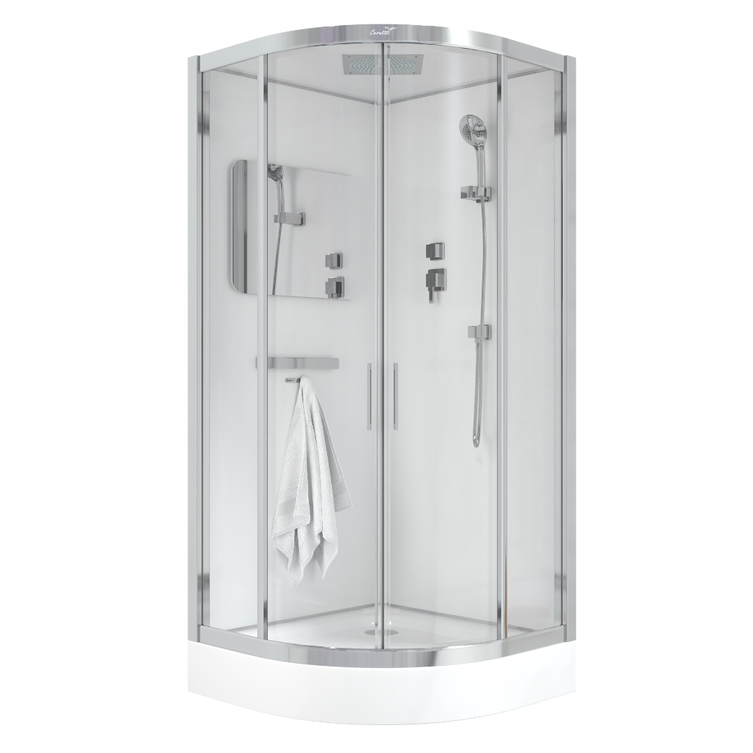 Душевая кабина Cerutti Viva101 с низ. под-н, перед.стекло проз.,зад.белое, проф.хром
