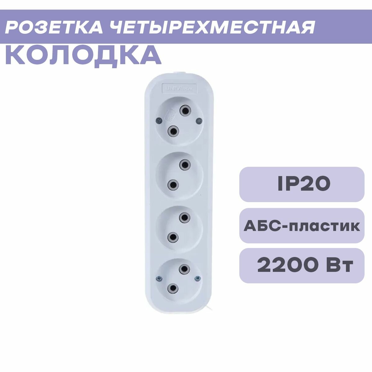 UNIVersal колодка роз. 4 гн. 10А 250В (АБС-пластик, белая) Е204