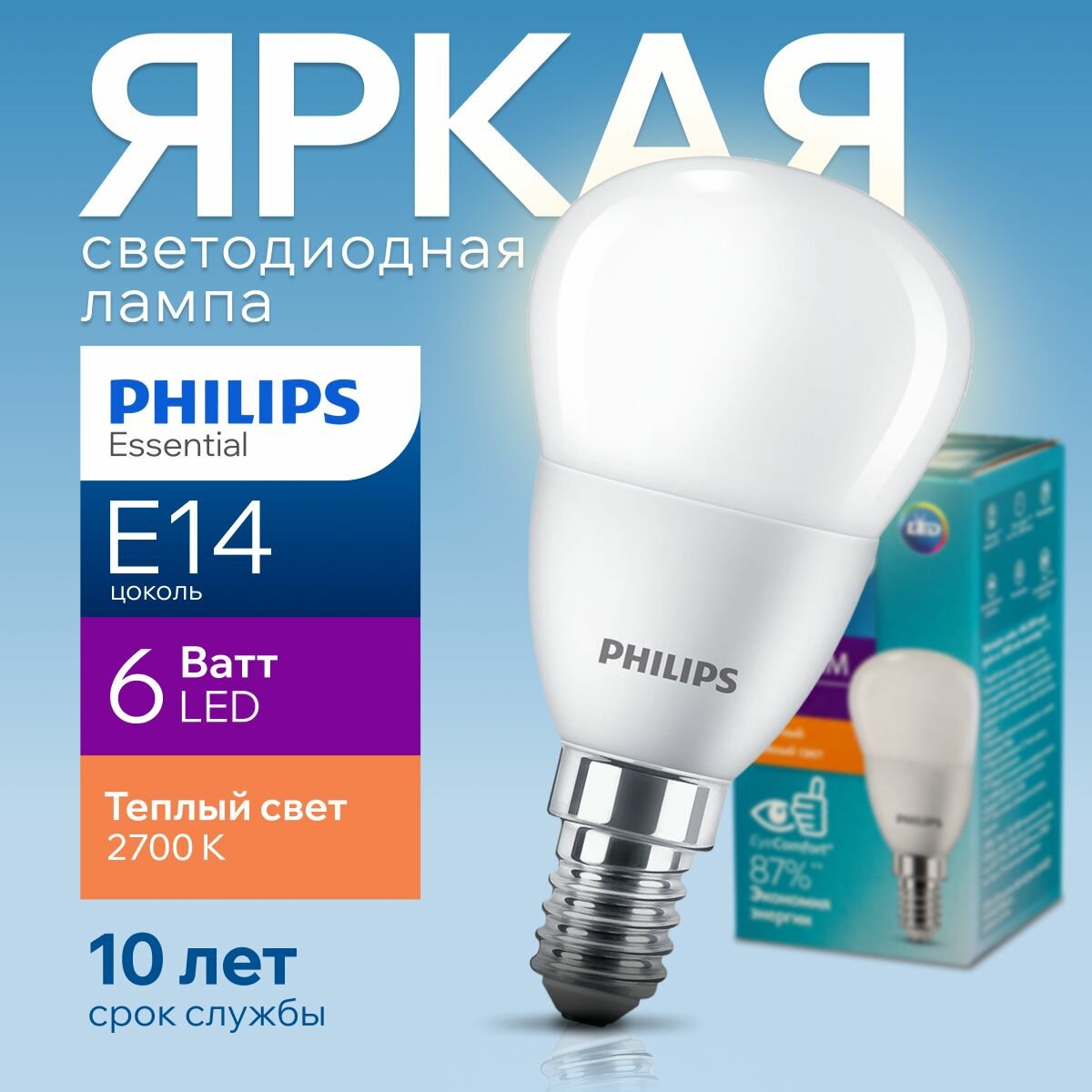 Philips Лампочка светодиодная Philips ESS LEDLustre P45 6Вт 2700K Е14 / E14 шар матовый теплый белый свет
