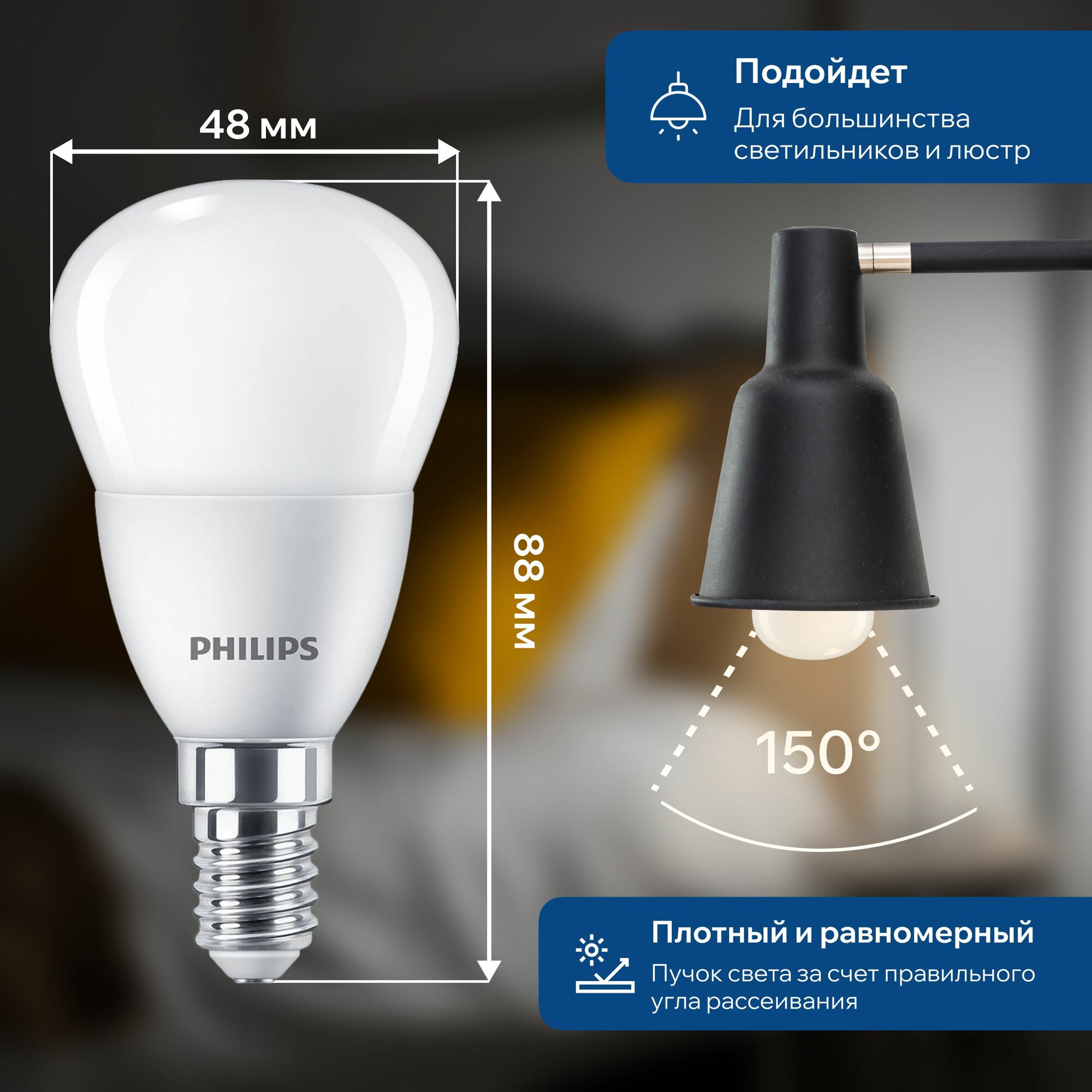 Ниже Вы можете прочитать отзывы на Светодиодная лампочка Philips Е14 6 Ватт теплый свет, шар 2700К ESS LEDLustre 827 P48 FR матовая, 6W, E14, 620лм, ознакомится с подробными характеристиками, посмотреть интересные обзоры и фотографии на Светодиодная лампочка Philips Е14 6 Ватт теплый свет, шар 2700К ESS LEDLustre 827 P48 FR матовая, 6W, E14, 620лм.