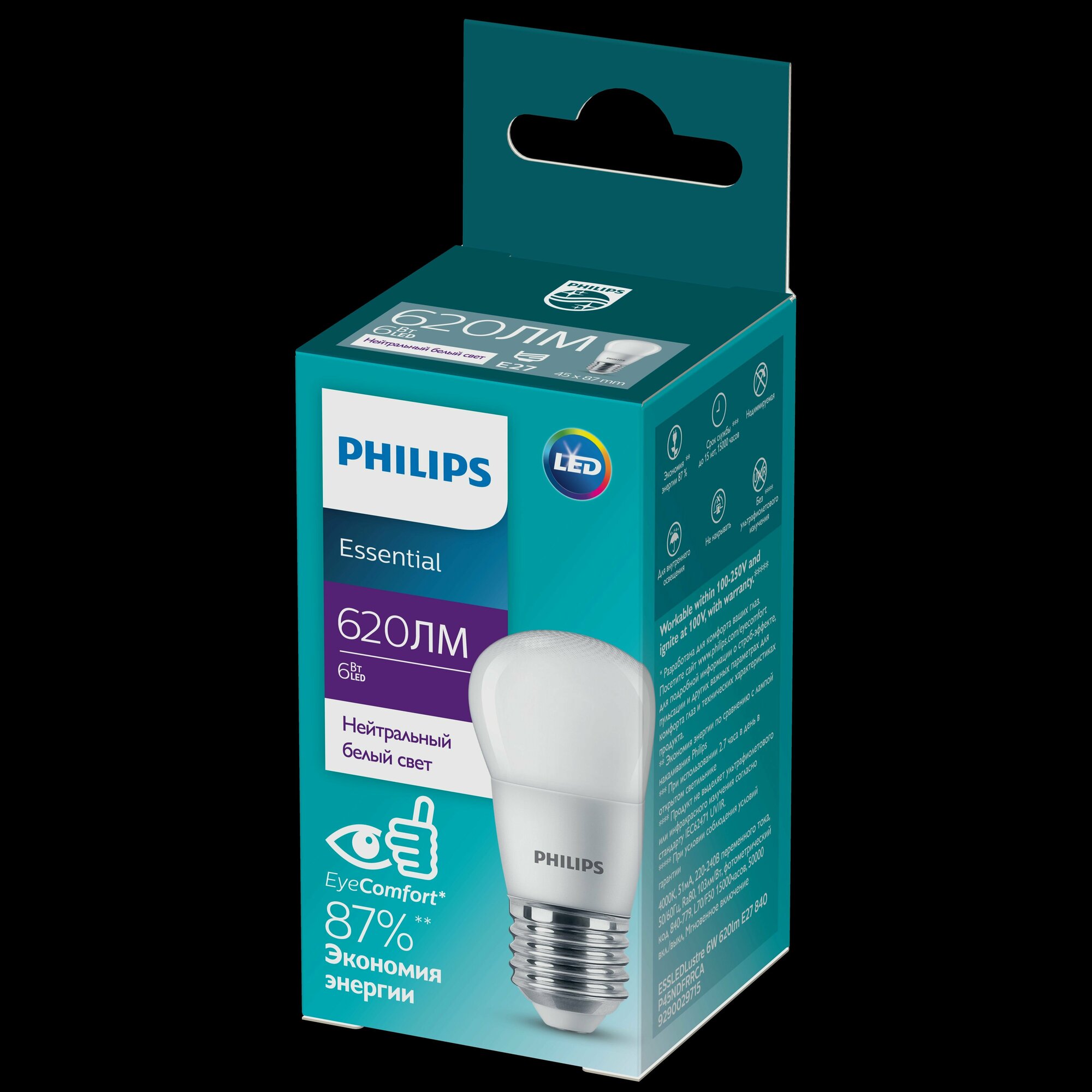Лампочка светодиодная Philips ESS LEDLustre P45 6Вт 620лм 4000K Е27 / E27 шар матовый нейтральный белый свет