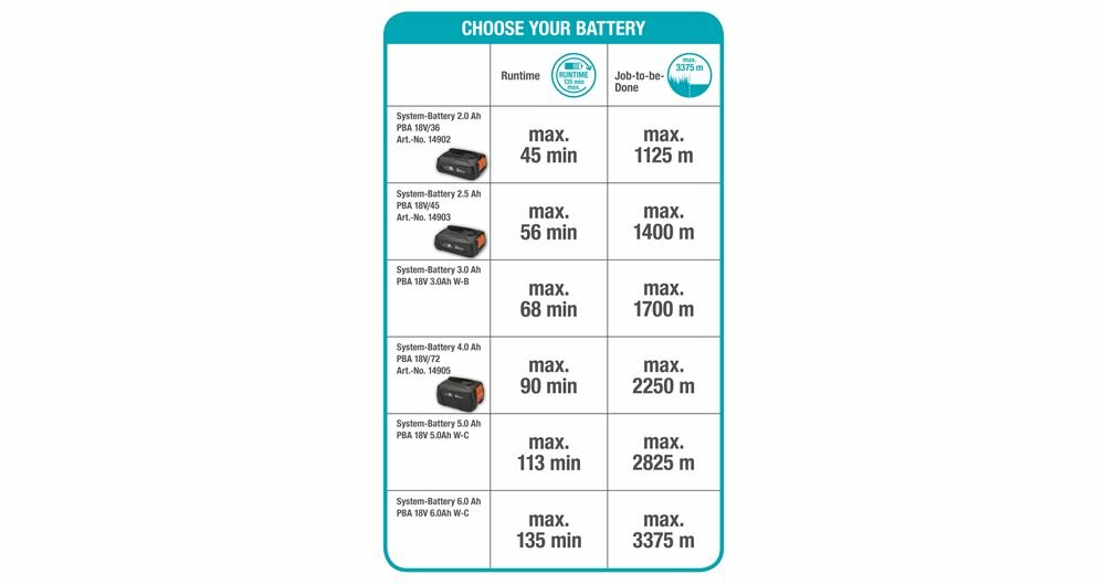 | Подробная комплектация | Аккумуляторный триммер, Аккумуляторная батарея 18 В, 2.5 А*ч - 1 шт., Зарядное устройство, Инструкция, Упаковка |