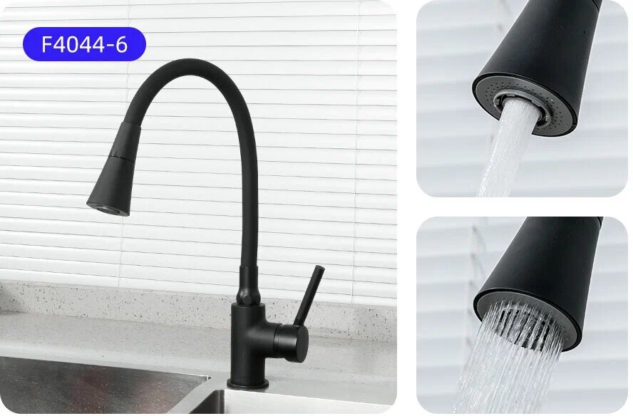 F4044-6 FRAP Смеситель для кухни с гибким изливом черный