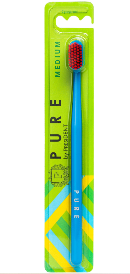 Зубная щетка средняя PURE by PRESIDENT MEDIUM (голубой)