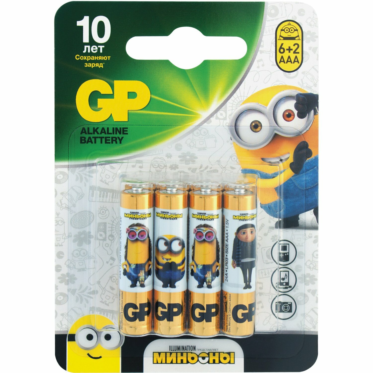 Батарейки GP 8 шт, Ultra Миньоны, AAA LR03, 24А, алкалиновые, мизинчиковые, блистер (4610116200483)
