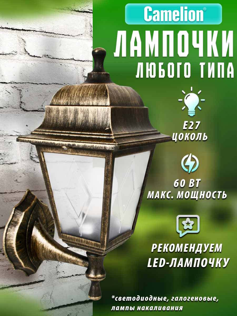 СохранитьСветильник уличный настенный Camelion черный+бронза интересное: