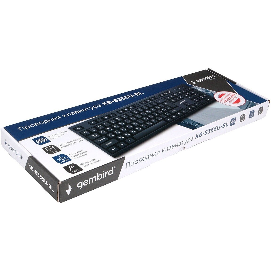 Клавиатура c лазерной гравировкой символов Gembird KB-8355U-BL