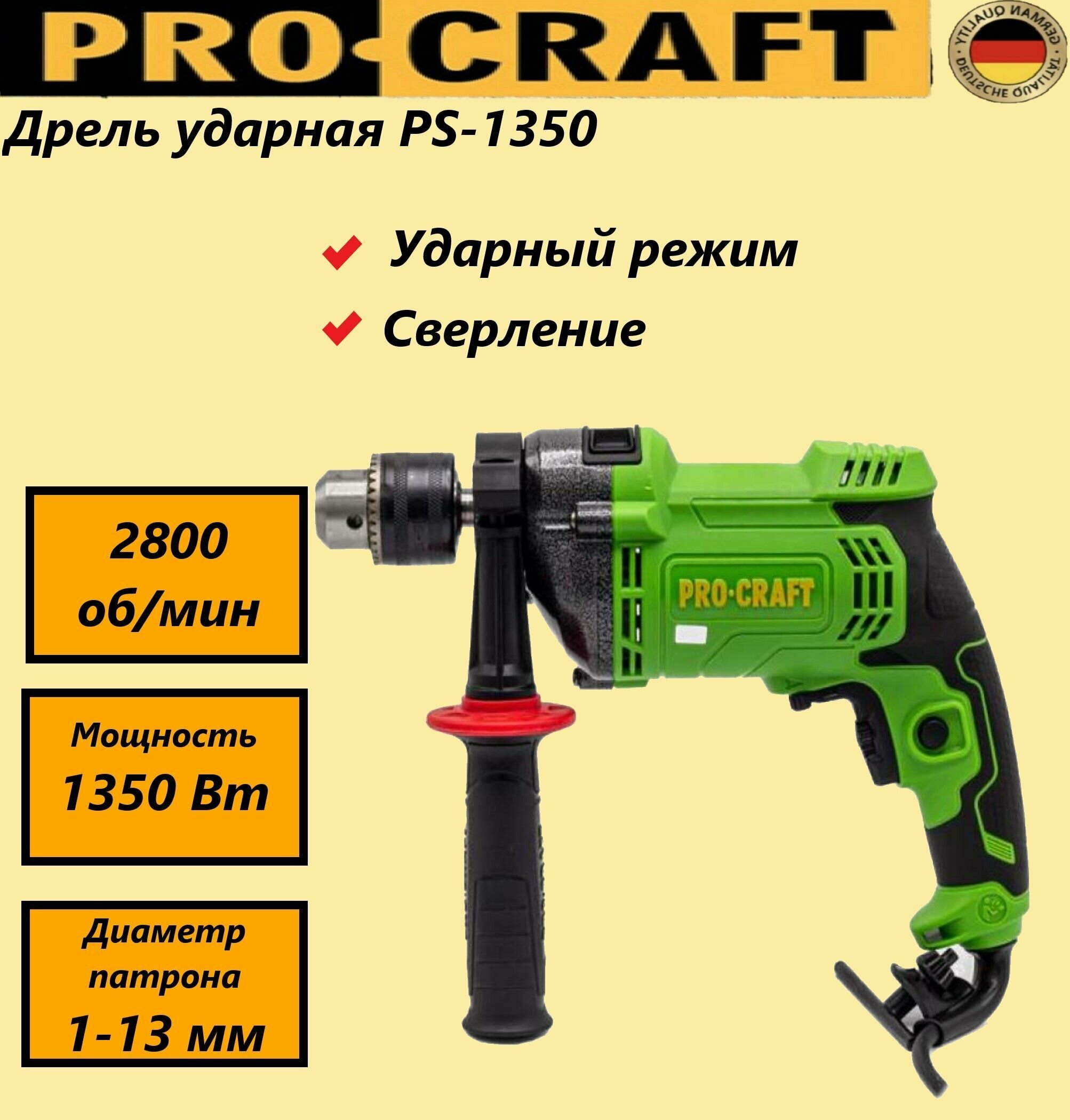Дрель ударная Procraft PS-1350, патрон 13мм, 1350 Вт, 2800об/мин