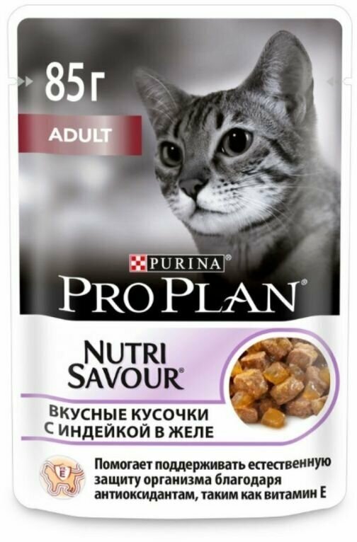 Pro Plan Nutrisavour Adult пауч для взрослых кошек (кусочки в желе) Индейка, 85 г. упаковка 26 шт