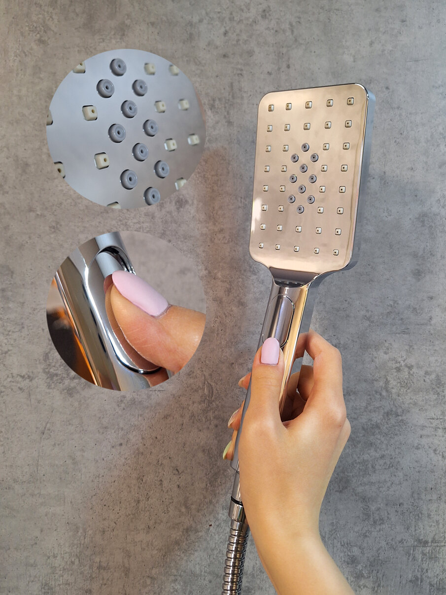 | Комплектация | встроенный механизм, смеситель, ручной душ, гибкий металлический шланг и установочный комплект |