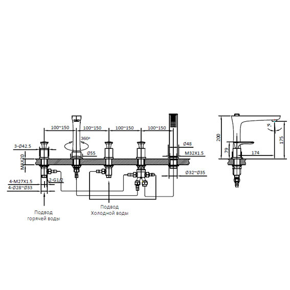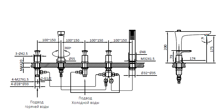 | Монтаж | на борт ванны |