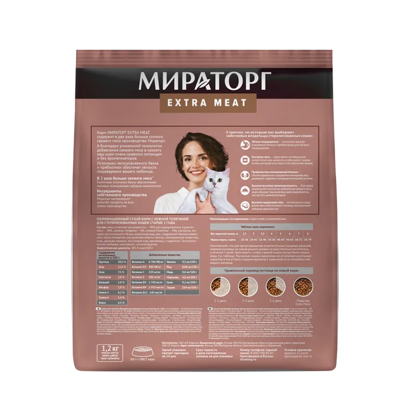 Купить Корм Мираторг Extra Meat для стерилизованных кошек, с телятиной, 1.2 кг