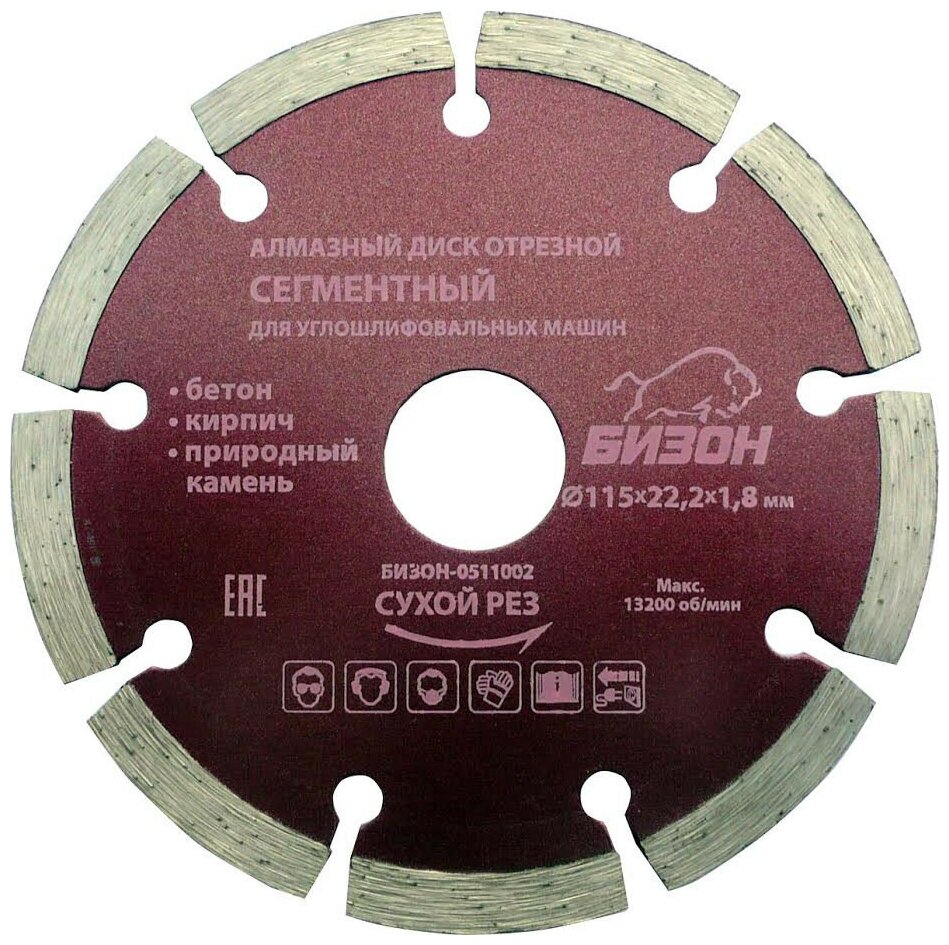 Диск алмазный отрезной сегментный по бетону (115х22.2 мм) бизон 0511002 интересное: