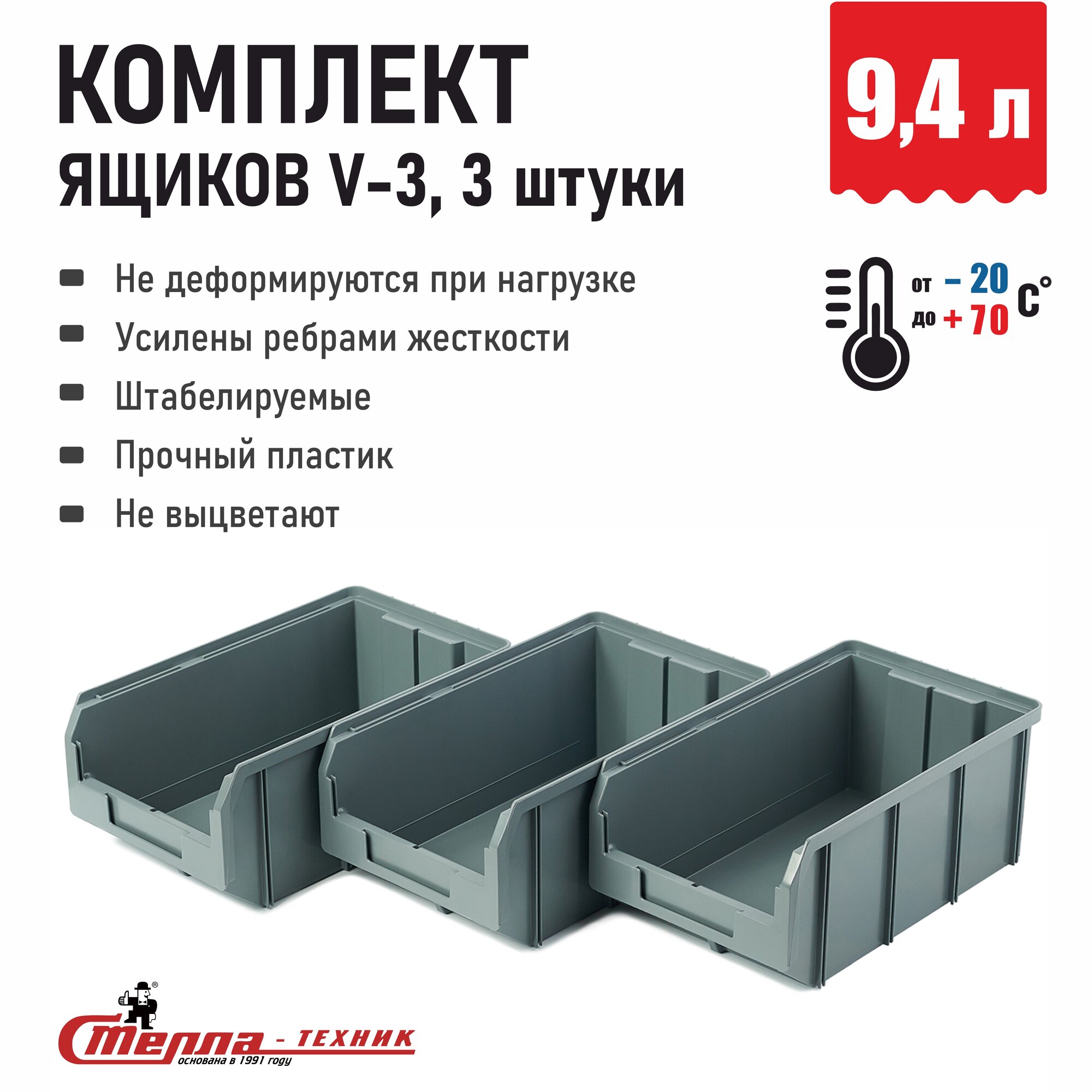 Пластиковый ящик Стелла-техник V-3-К3-серый , комплект 3 штуки