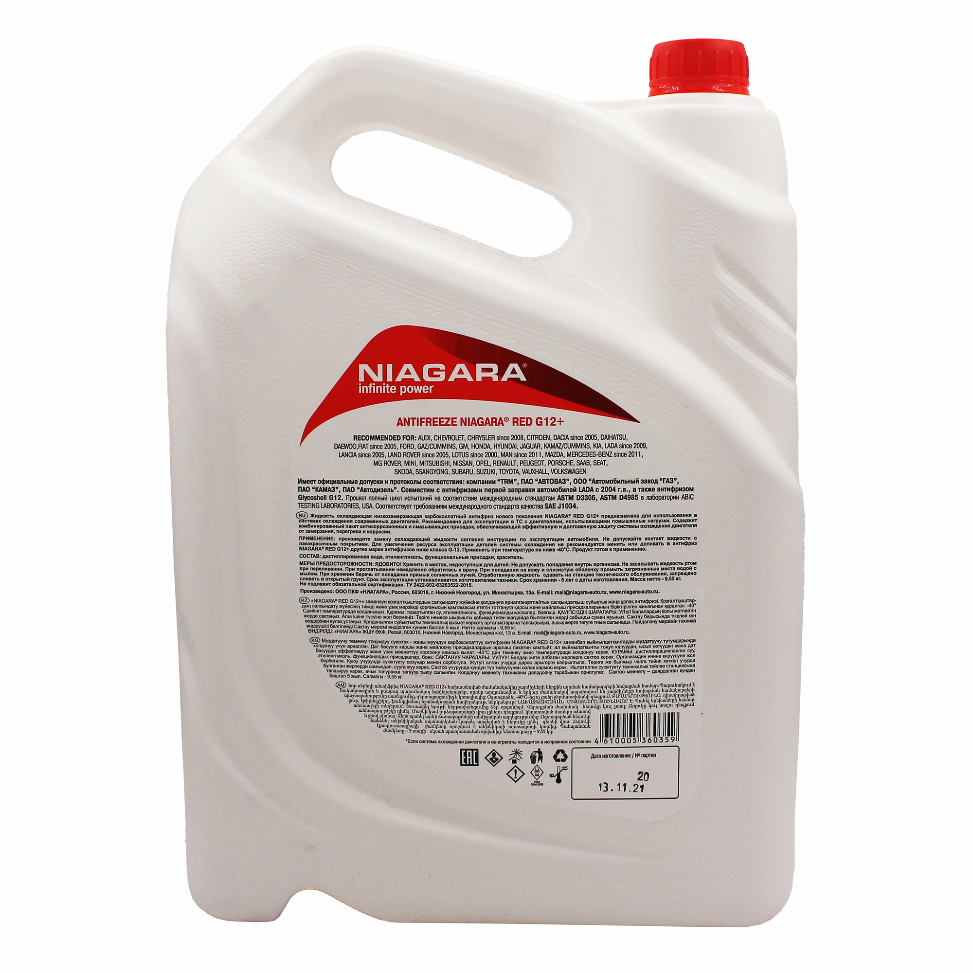 NIAGARA Жидкость охлаждающая Антифриз Ниагара G12+ карбоксилатныйкрасный 10 кг 1001001012