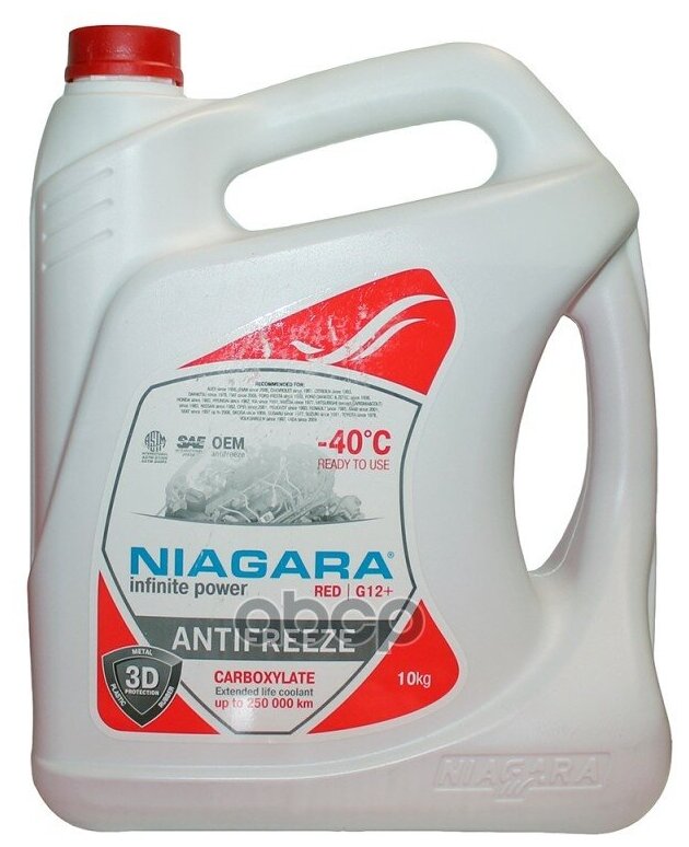 СохранитьNIAGARA 1001001012 Жидкость охлаждающая "Антифриз" "Ниагара" G12+ (карбоксилатный)(красный) 10 кг интересное: