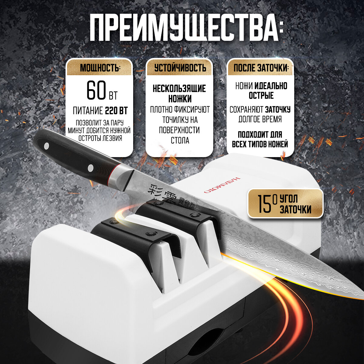 Точилка для ножей Hatamoto (EDS-H198), двухэтапная, станок для заточки электрический