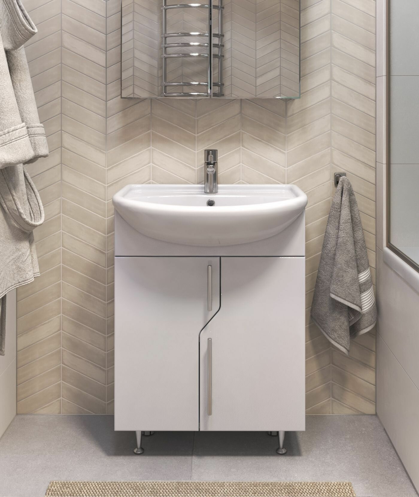 Тумба с раковиной для ванной Кристалл 50 белая.
