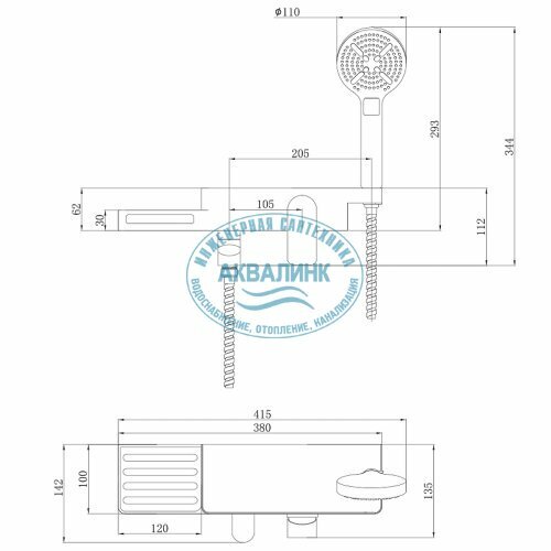 | Комплектация | Смеситель. 3-функциональная лейка, настенное крепление для лейки. Шланг. |